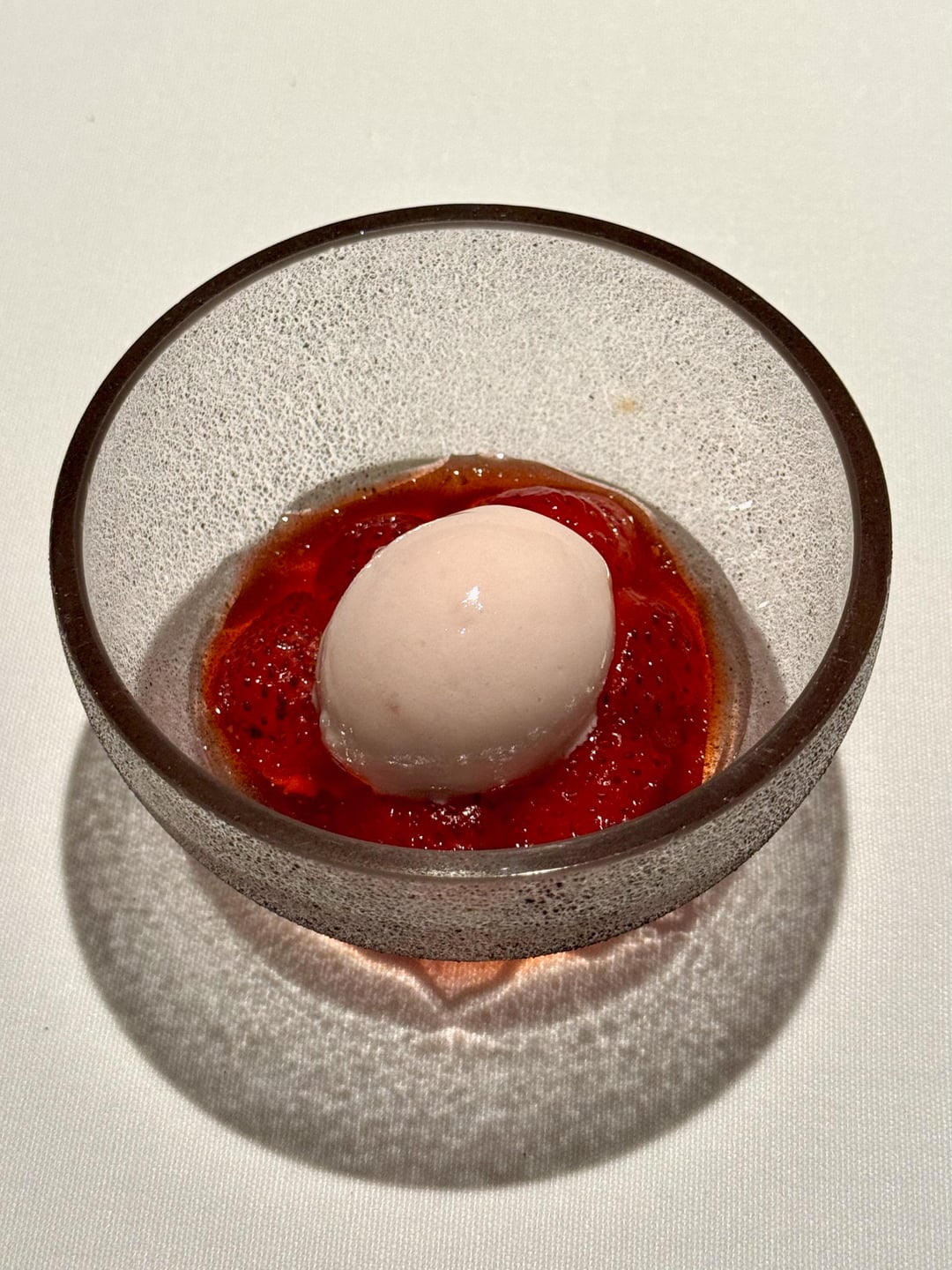 Amazing. The most “strawberry-y” dish I’ve ever had. The tart rhubarb and bitter anise seemed to bring out even more strawberry flavor.