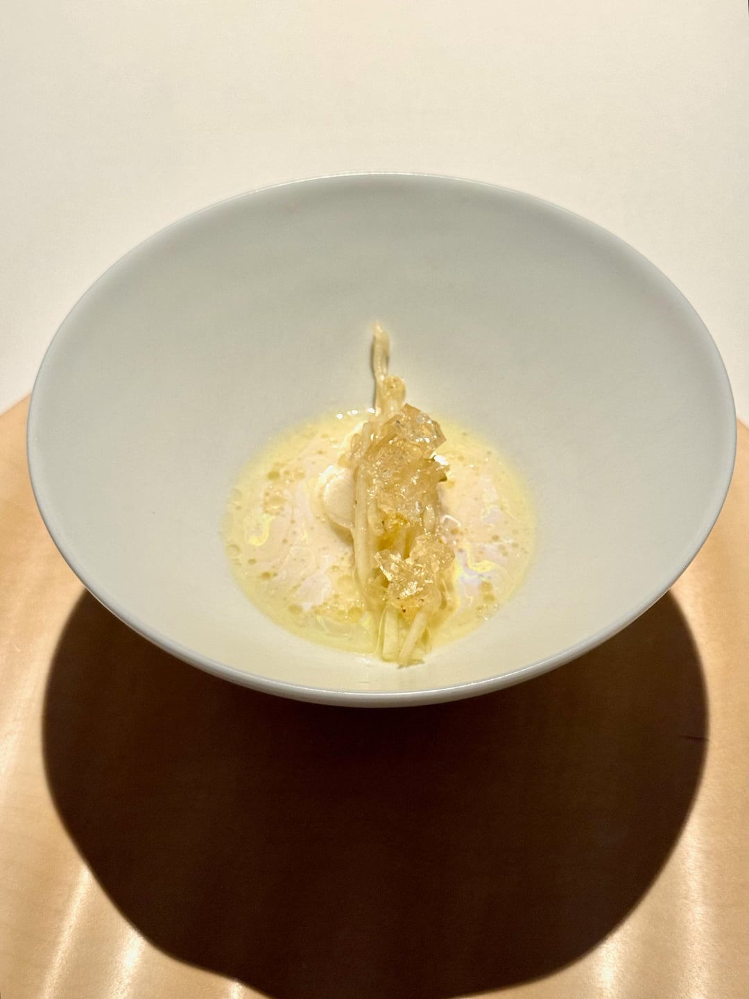 The concept was more memorable than the taste. I didn’t realize you could puff a tendon. Subtle umami and sweetness, with a delicate crisp.
