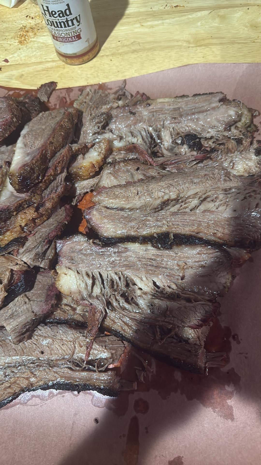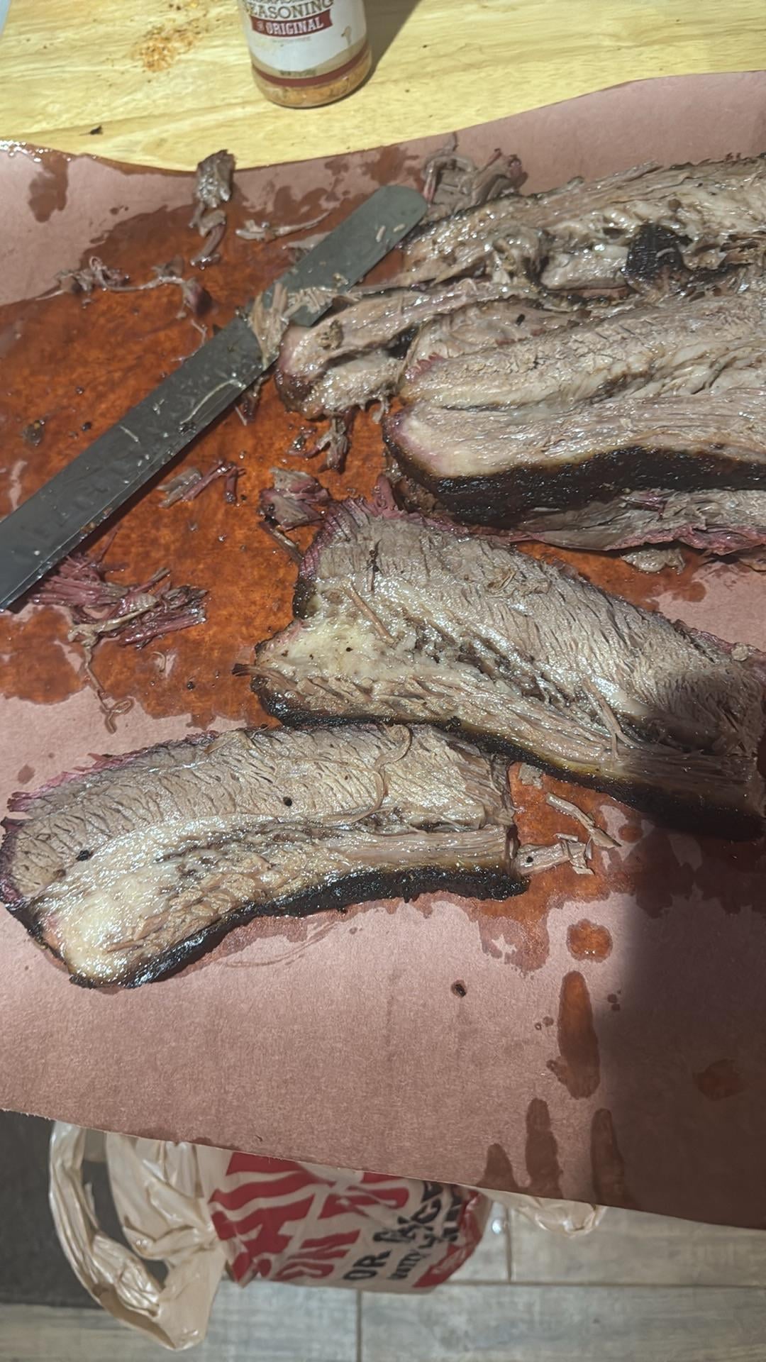 I bought a brisket from Walmart because it was 60$, 15 lbs before trim. After trim it was 12~ish. I put my pellet smoker at 225 and then applied my rub while my smoker was doing its thing. Put it on fat cap down at 10am, it hit the 165 temp stall at 5 hours in so I wrapped it up in butcher paper and used some of the fat that rendered down in a separate tray to drizzle on the brisket. Left it in there and my probes said 201 and 205 at 8PM. Took it off and let it rest for 3 hours wrapped up in a towel. Opened it up and i barely had to press down and it was oozing with juice, had a nice smoke ring, all that. Only that it wasn’t as pink as I’ve seen in videos, the meat was tender as hell but it was extra salty. We are talking about pucker your lips salty. Maybe I should have used less rub, put the temp at 200 or let it rest longer. I have no idea, thoughts anyone? Please help 😅