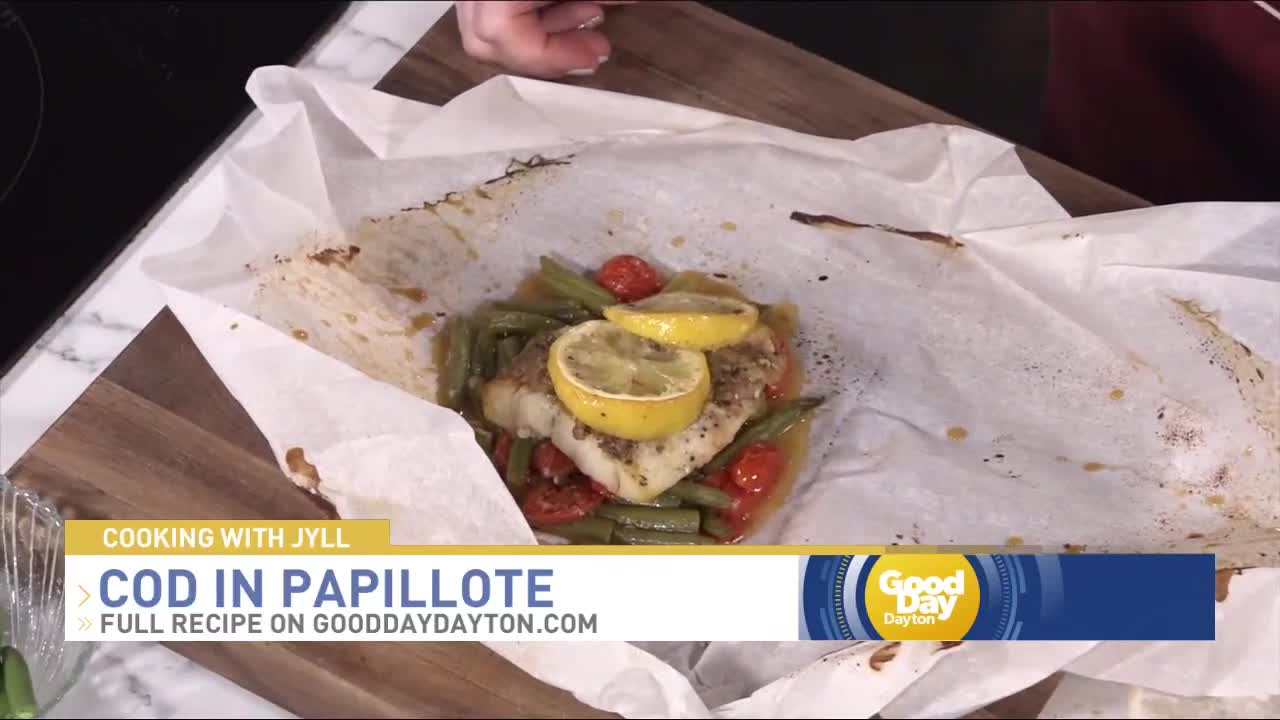 – Fold the unused half of the parchment over the fish and fold and secure the parchment around the fish until a tight envelope is formed (leave one end open if you choose to pour in wine).