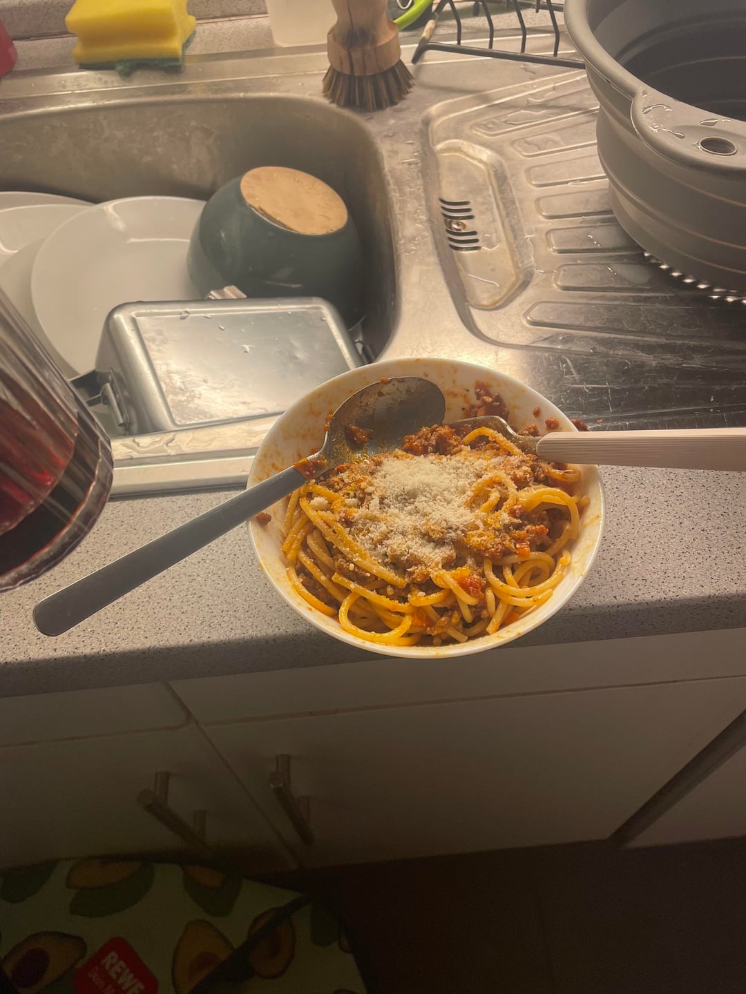 I made spaghetti bolognese for my girl because I lover her very much. I let it cook for about 5 hours and it turned out very good 🙂 by BananaJoe2603 5 Comments supperfash 7 hours ago Kitchen too clean. Majorflatulence 7 hours ago Looks tasty One-Grape-8659 6 hours ago Lucky girl Same-Platypus1941 6 hours ago Nice. Honestbabe2021 5 hours ago Are you the guy that had the hotdog in the same precarious position last week!?!? Either way this looks amazing.