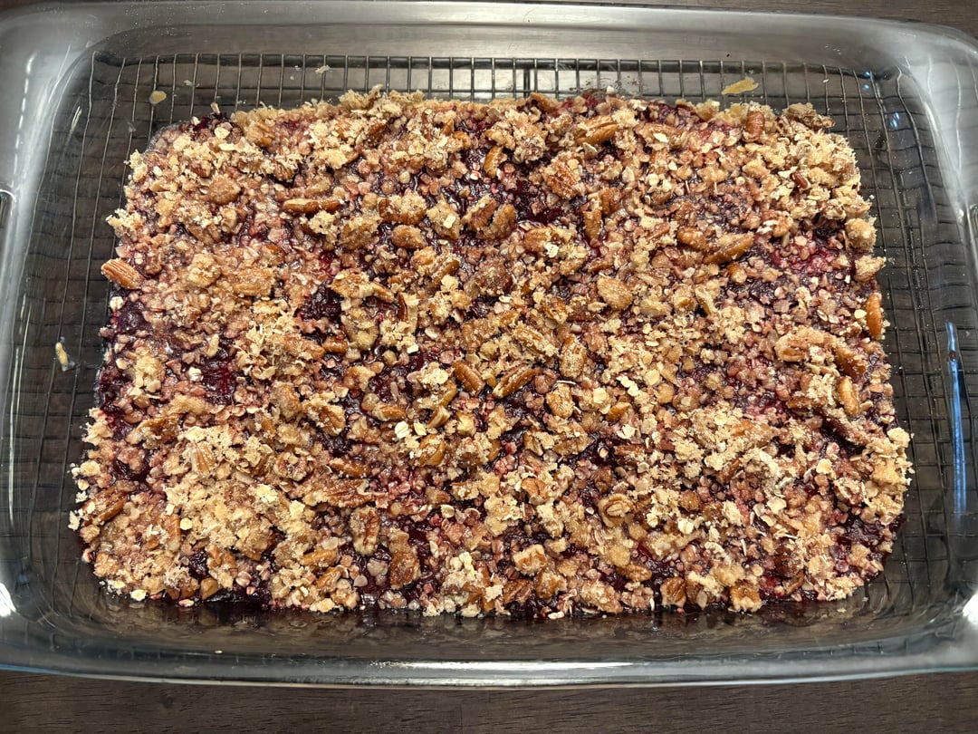 Photo Five: My cooling jammy bars, pre-sliced, with my crumble top all nice and melty.