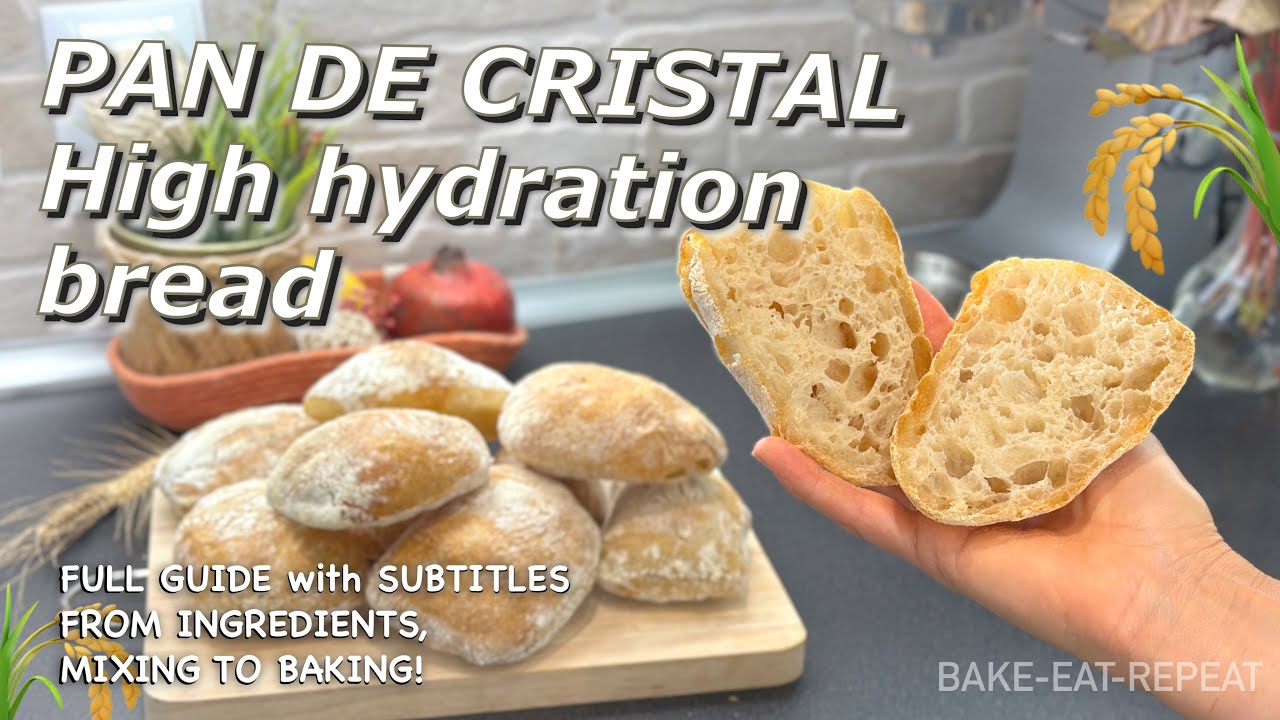 Hello! Let’s make a Pan de Cristal! Pan de Cristal is a type of bread of Spanish origin, characterized by its extremely thin and crispy crust and its light, airy crumb with large air pockets. It is made with a high-hydration dough, meaning it uses a lot of water, resulting in a texture that resembles thin, fragile glass when broken. This is hybrid method of dough with yeast and sourdough starters. So, let’s begin!