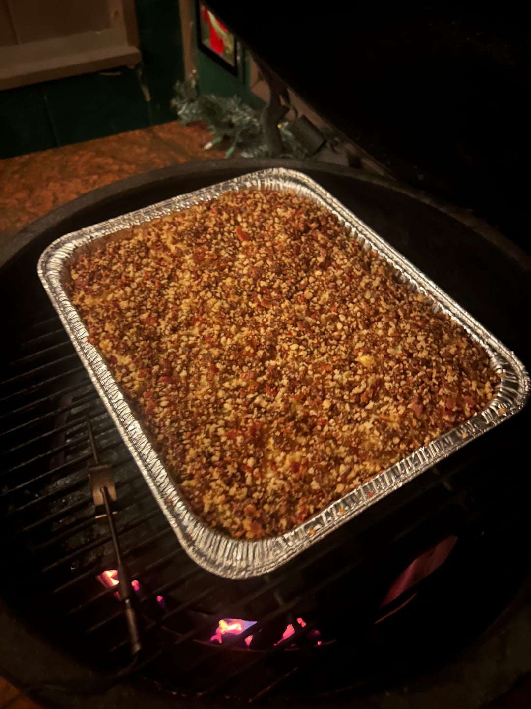 Mac & Cheese: I use an old one from Malcom Reed — pre-pitmaster stardom — and it’s great. It’s a fun recipe build before an hour over pecan at 350. Here’s the link: https://youtu.be/jado2za9g8c?si=39htHP1W1l-INjUe.