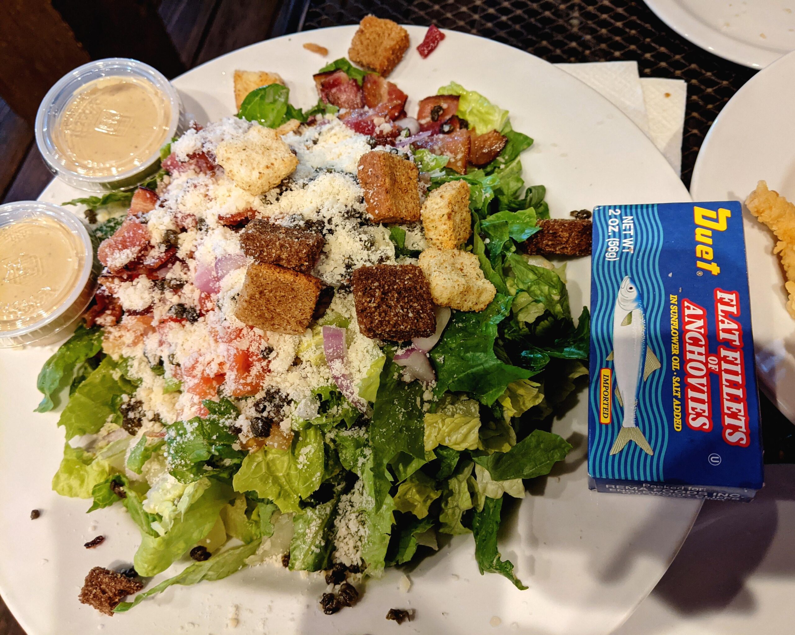 Caesar salad I ordered came with an entire unopened can of anchovies.