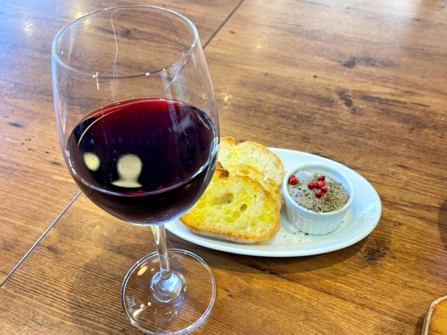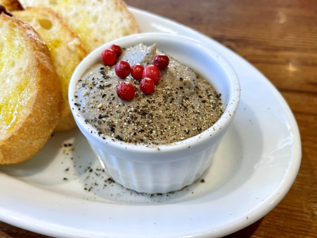 Similarly, the chicken liver pâté with its pink peppercorn accents proved to be an excellent accompaniment to the bruschetta that was toasted and coated with olive oil and garlic. It was a perfect plate for snacking and nibbling on with no strong liver odor.