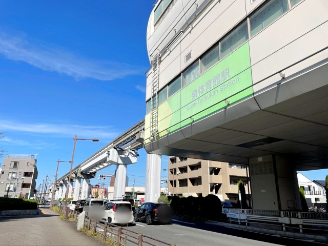 …and eventually getting off at Izumi-Taiikukan Station.