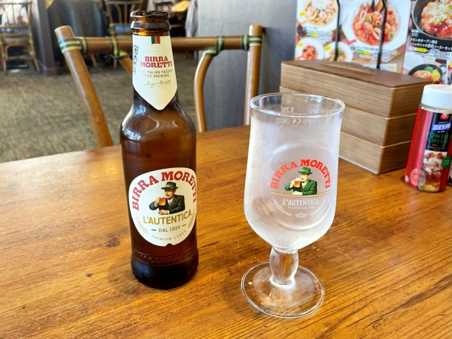 Even though it was the middle of the day, Ahiruneko couldn’t resist looking at the drink menu. He was surprised to see Birra Moretti, an Italian beer, on the menu for 605 yen (US$3.94).