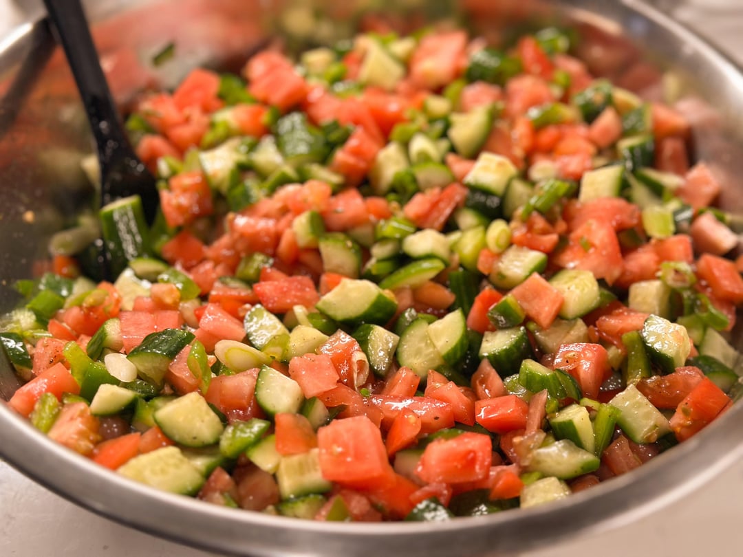 Hummus recipe attached. Ful is basically sautéed garlic and cumin in EVOO, a few cans of fava beans, finished with lemon juice and tahini, and puréed. The salad is just chopped cukes, tomatoes, green bell pepper, and scallions, seasoned with salt, pepper, EVOO, and lemon juice.