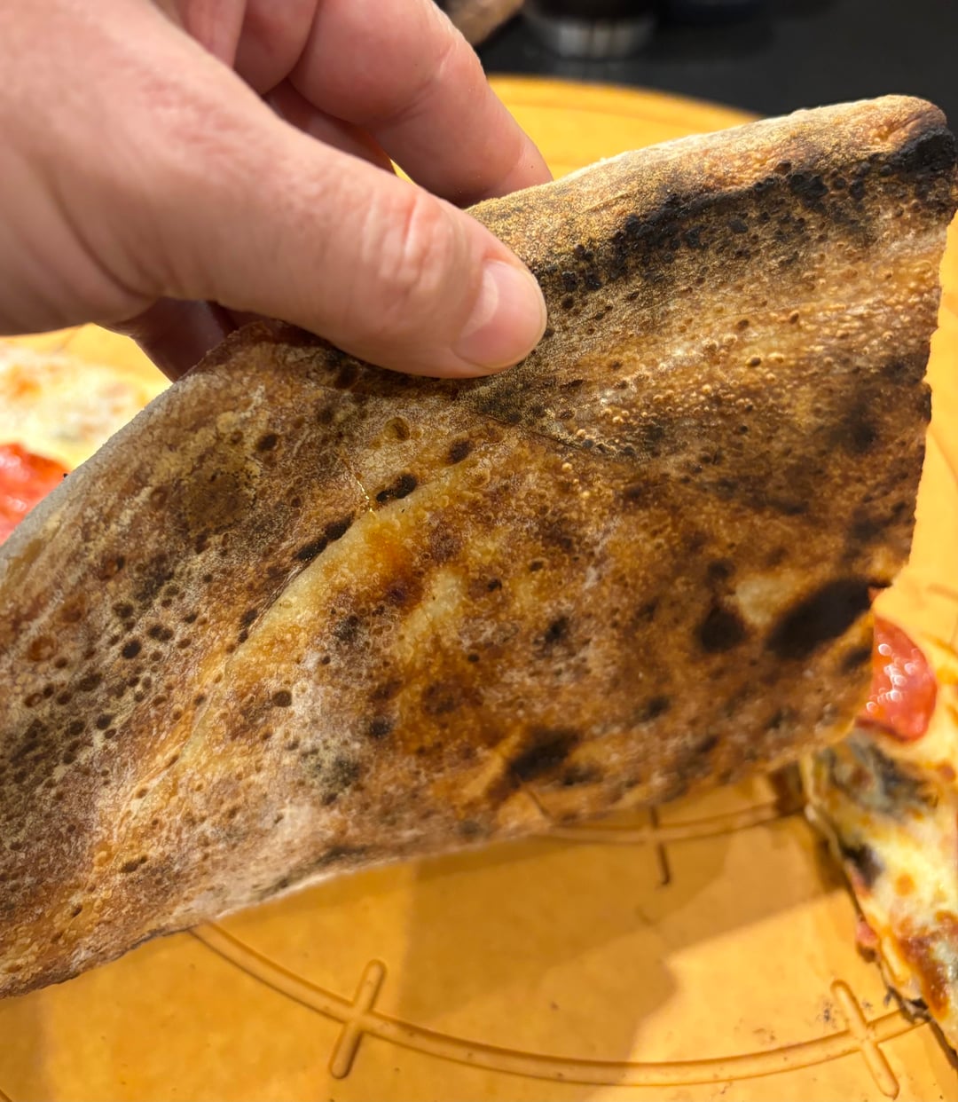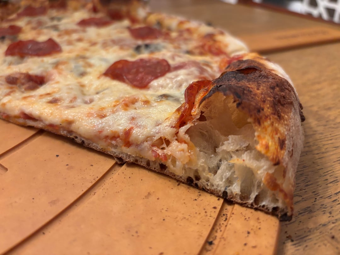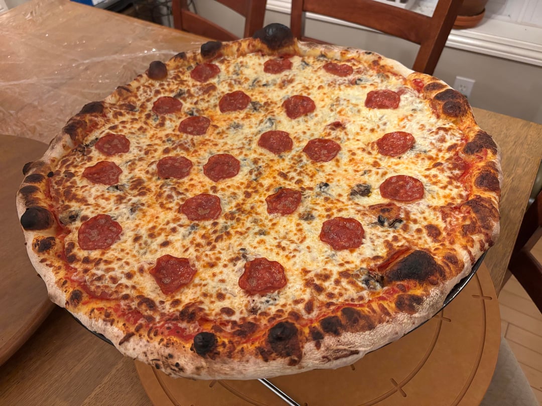 This one came out great. The bottom was a bit darker than I’d like, so next time I’ll maybe try a launch temp to 720° instead of 770°. But otherwise it had a good balance of crispy sturdy base and a fluffy interior, and most importantly it’s the first 20+ inch pizza I’ve launched without any problems!