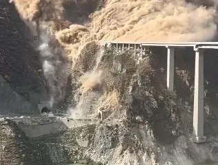 Staggering moment 2,500ft bridge collapses just MONTHS after opening