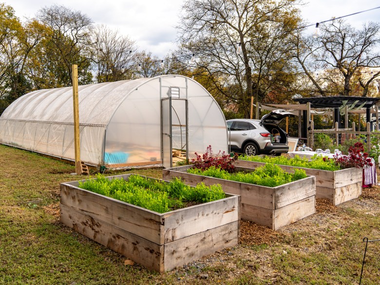Garden beds in front of a newly installed tunnel greenhouse at Brooklyn Heights Community Garden. Credit: Martin B. Cherry / Nashville Banner