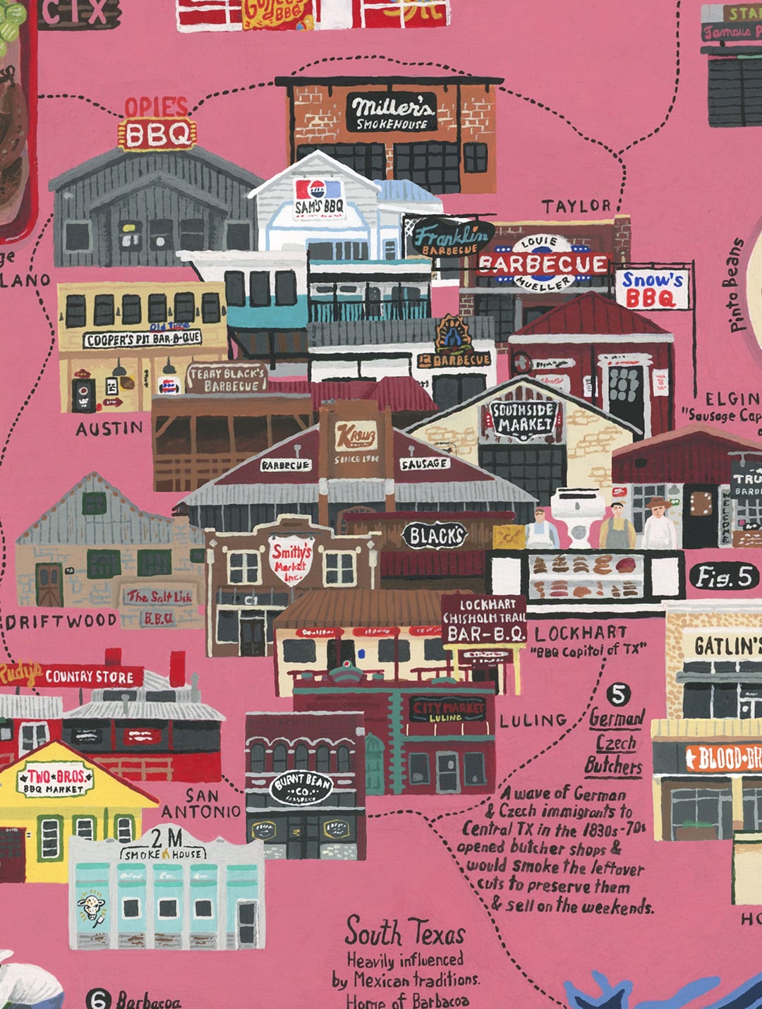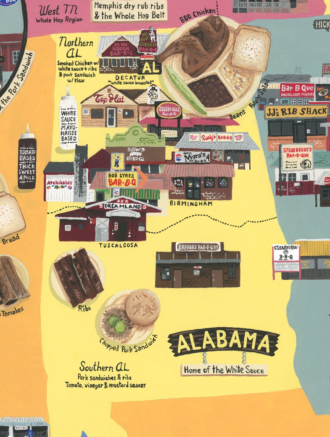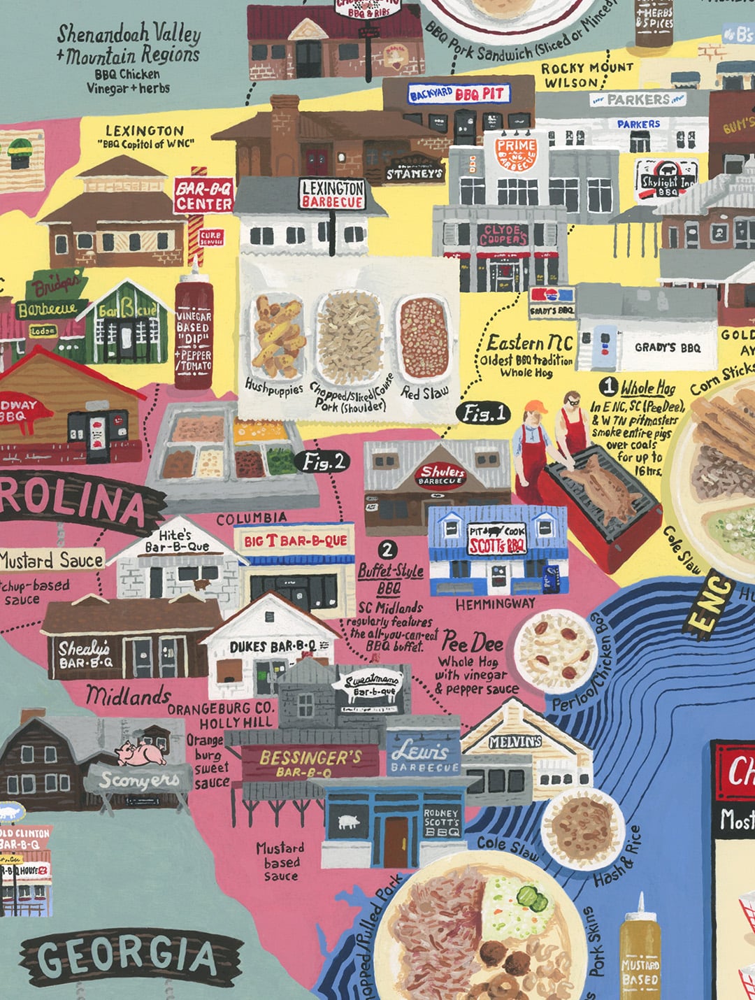 (Prints available at https://www.veazeystudio.com/product/bbq-map)