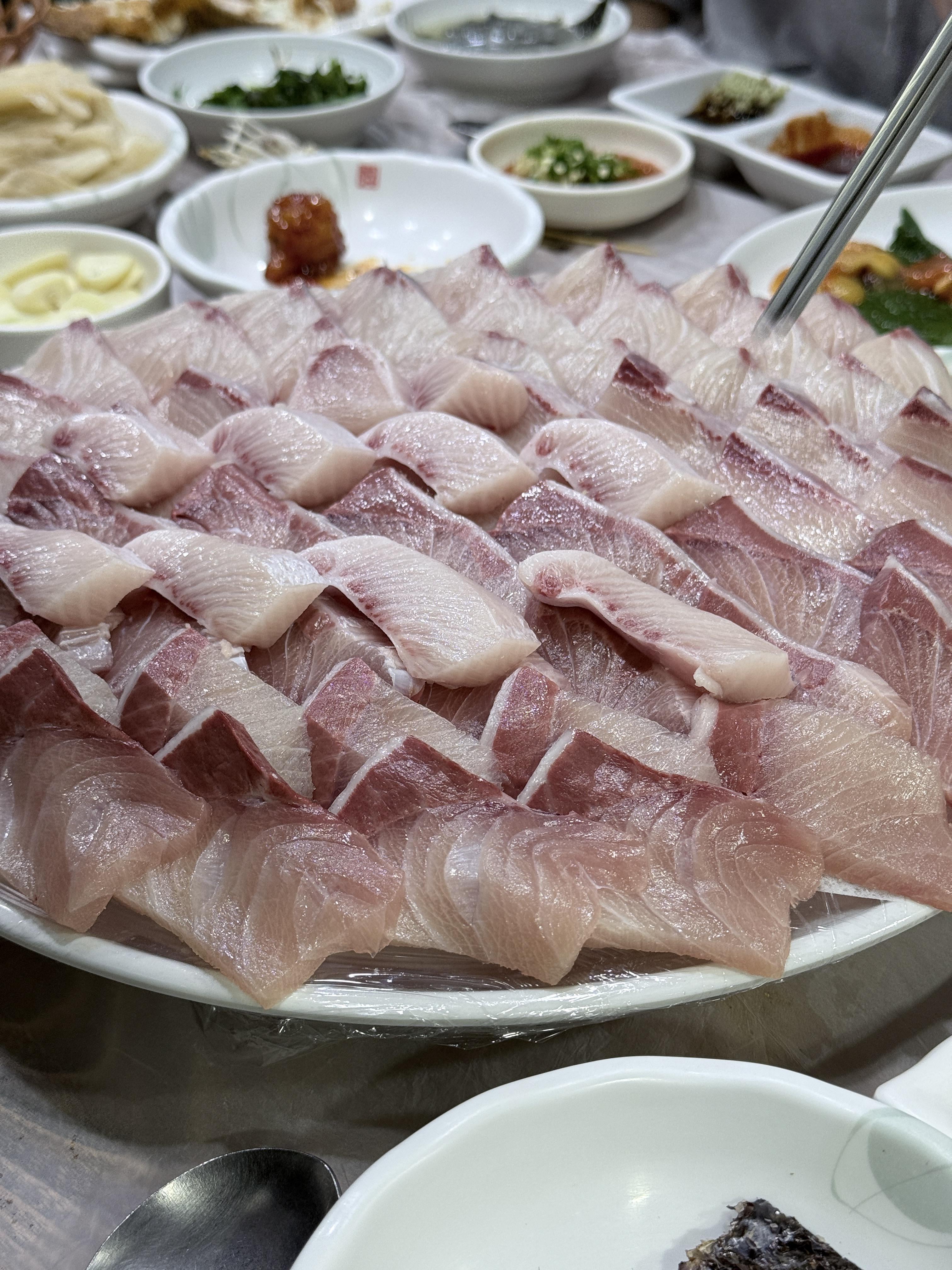 Have you ever tried eating yellowtail (대방어) sashimi 회 that we eat in Korea when winter comes?