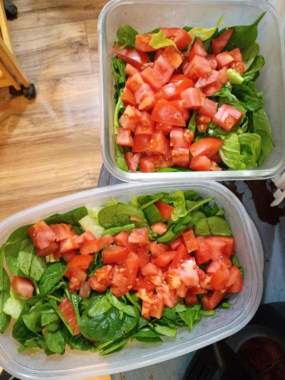 Simple side salads, romaine, spinach and tomatoes