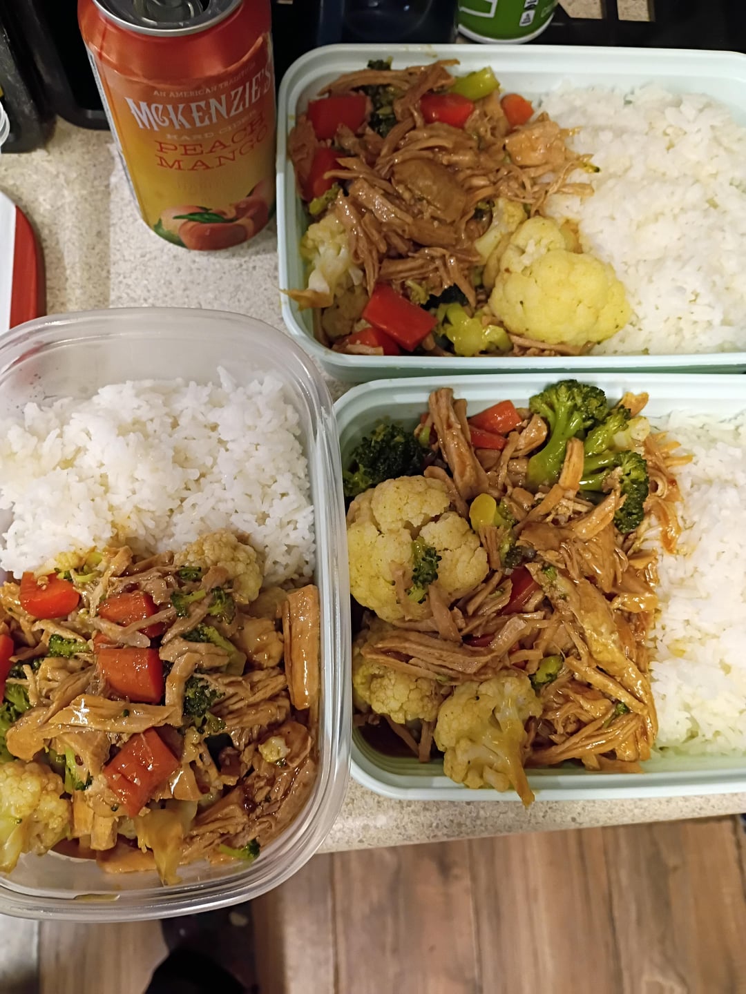 Asian style pork: pork ribs, tsang brown sauce, cauliflower, broccoli, carrots, rice