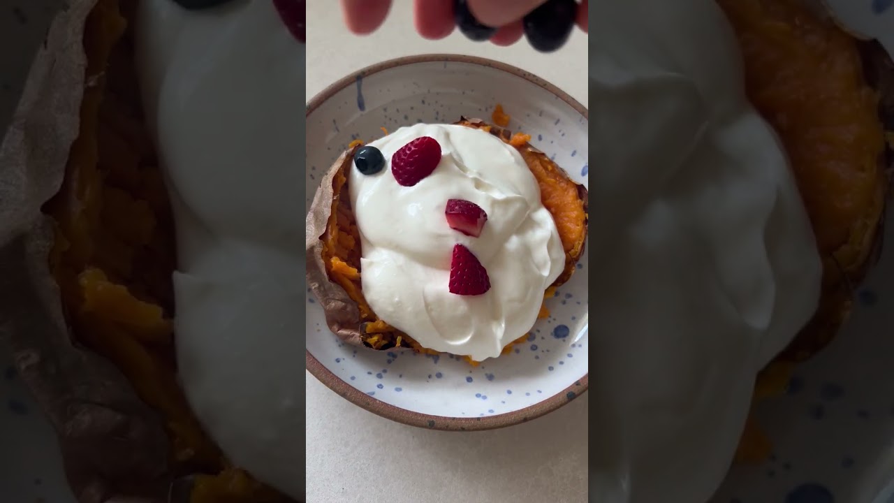 the warm sweet potato w. cold greek yogurt and fruit 🤤 ima try this !