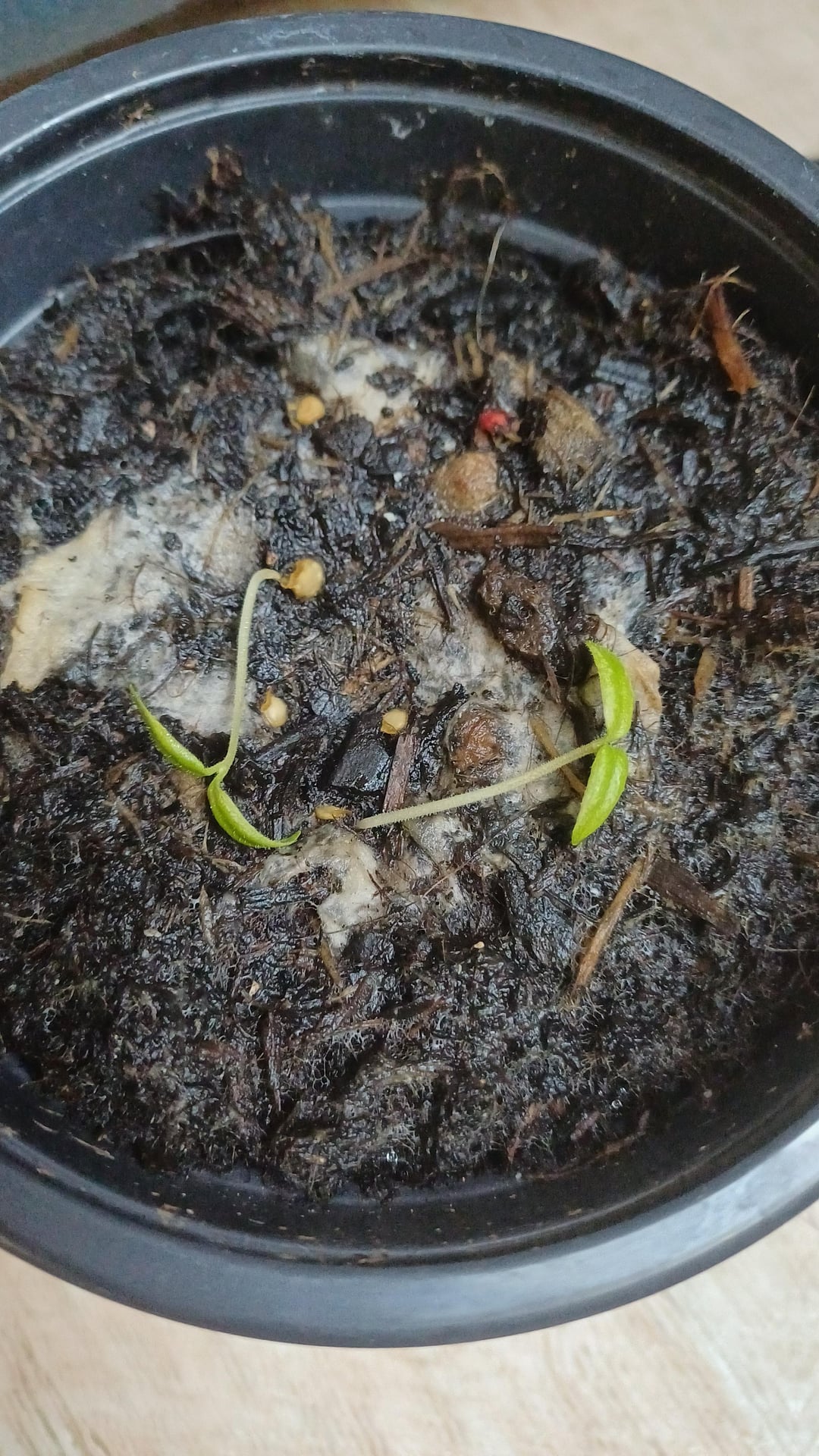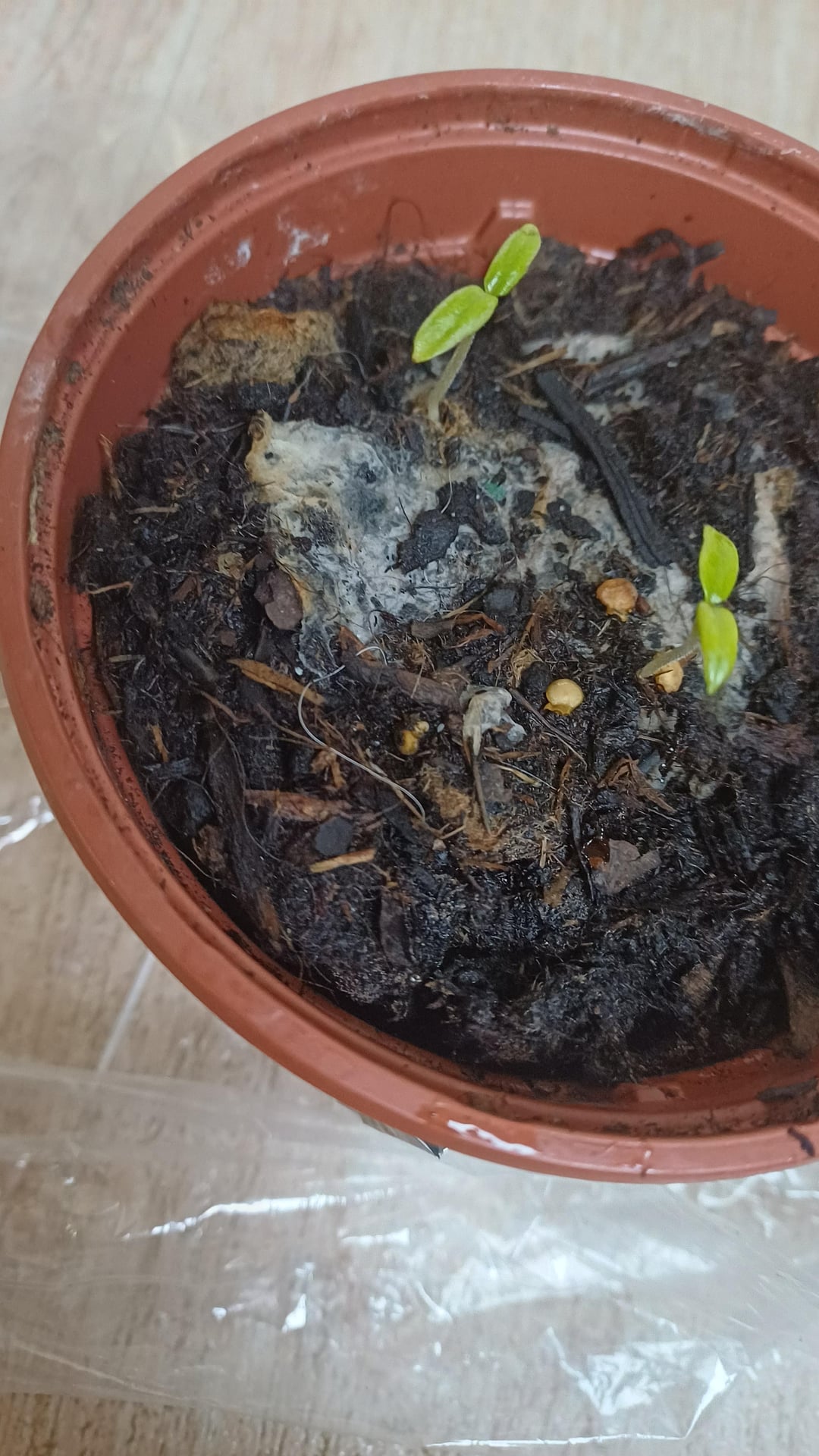 Donโ€™t add any fertilizers until you have at least 2 nodes of true leaves. The first two leaves are not true leaves. I donโ€™t expect that youโ€™ll need to water for a while, but if the pot does dry out, only water with the peroxide solution and any time you see the mold coming back. Good luck.๐Ÿคž๐ŸฝโœŒ๐Ÿฝ๐Ÿ˜Ž๐Ÿ•‰๏ธโ˜ฏ๏ธโ˜ฎ๏ธ๐Ÿซ‘๐Ÿซ‘๐Ÿซ‘๐Ÿซ‘