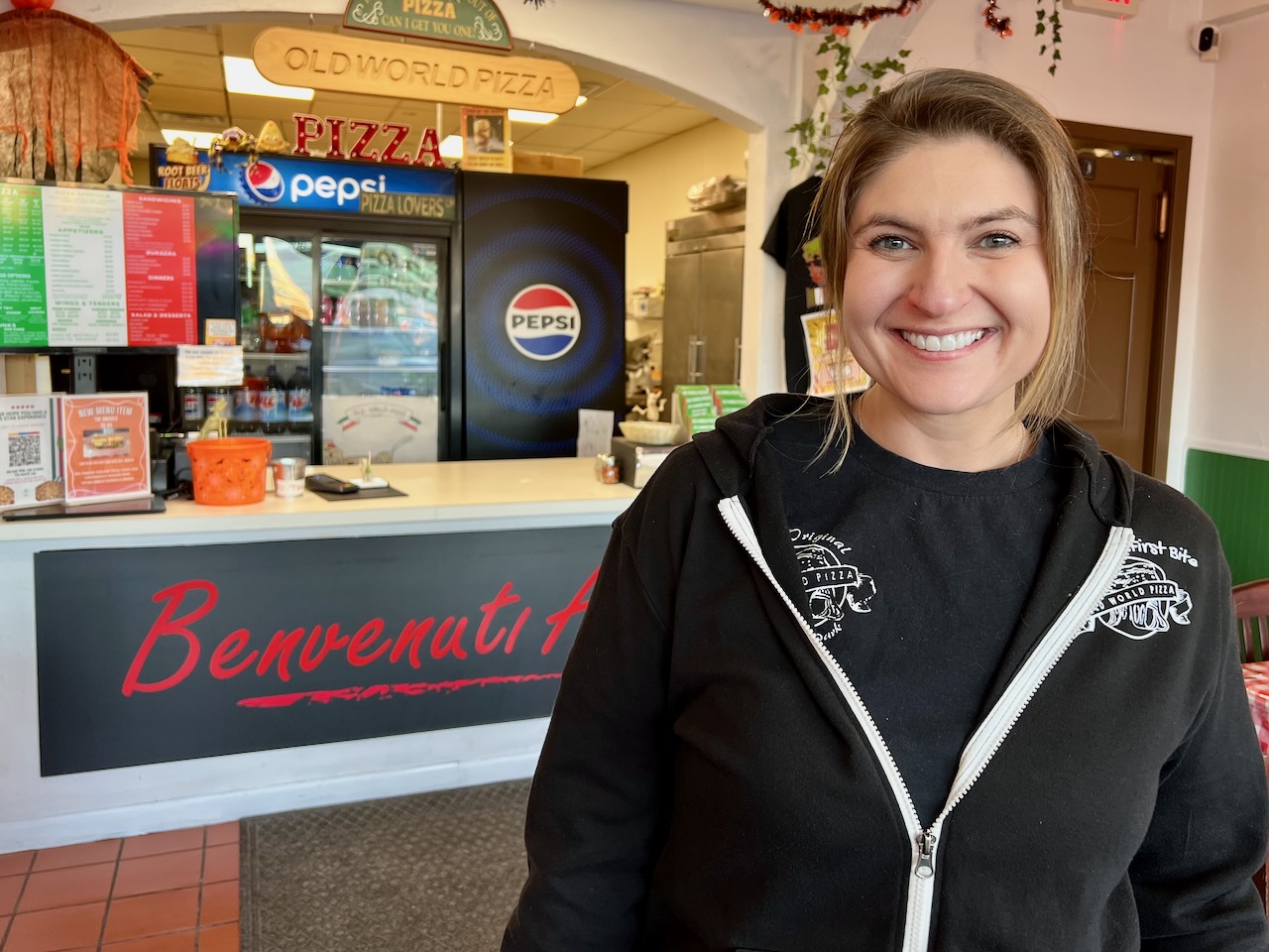 Old World’s thin crust pizza was just what she was hungry for.