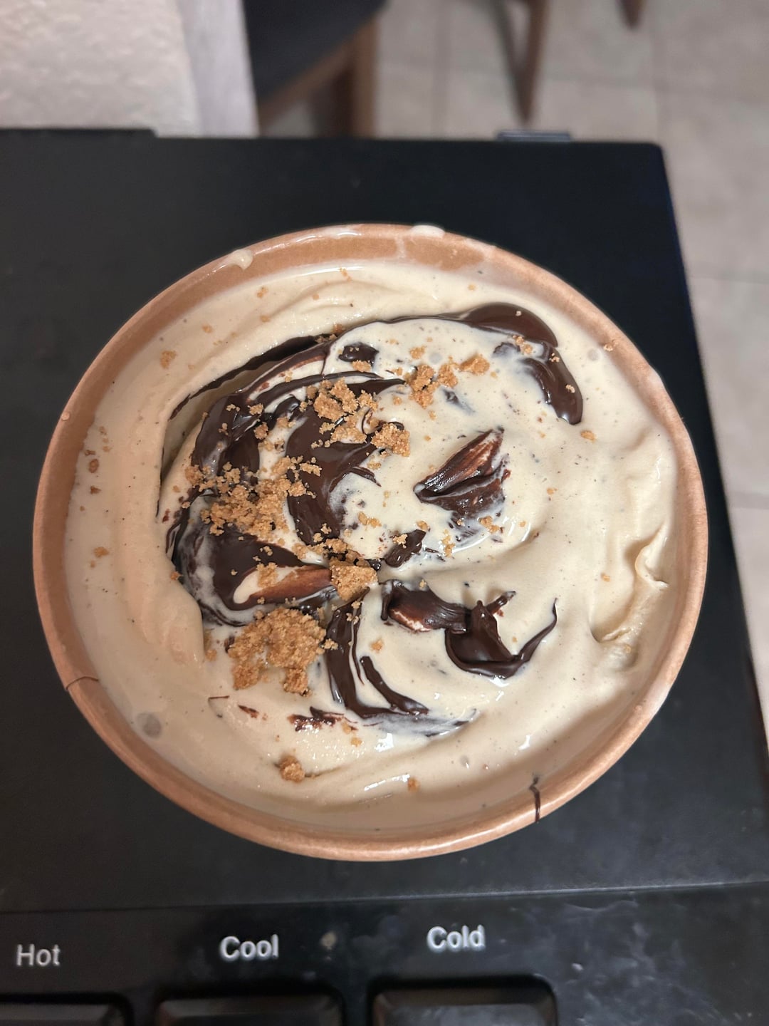Toasted marshmallow base with a dark chocolate swirl and bits of graham cracker crust