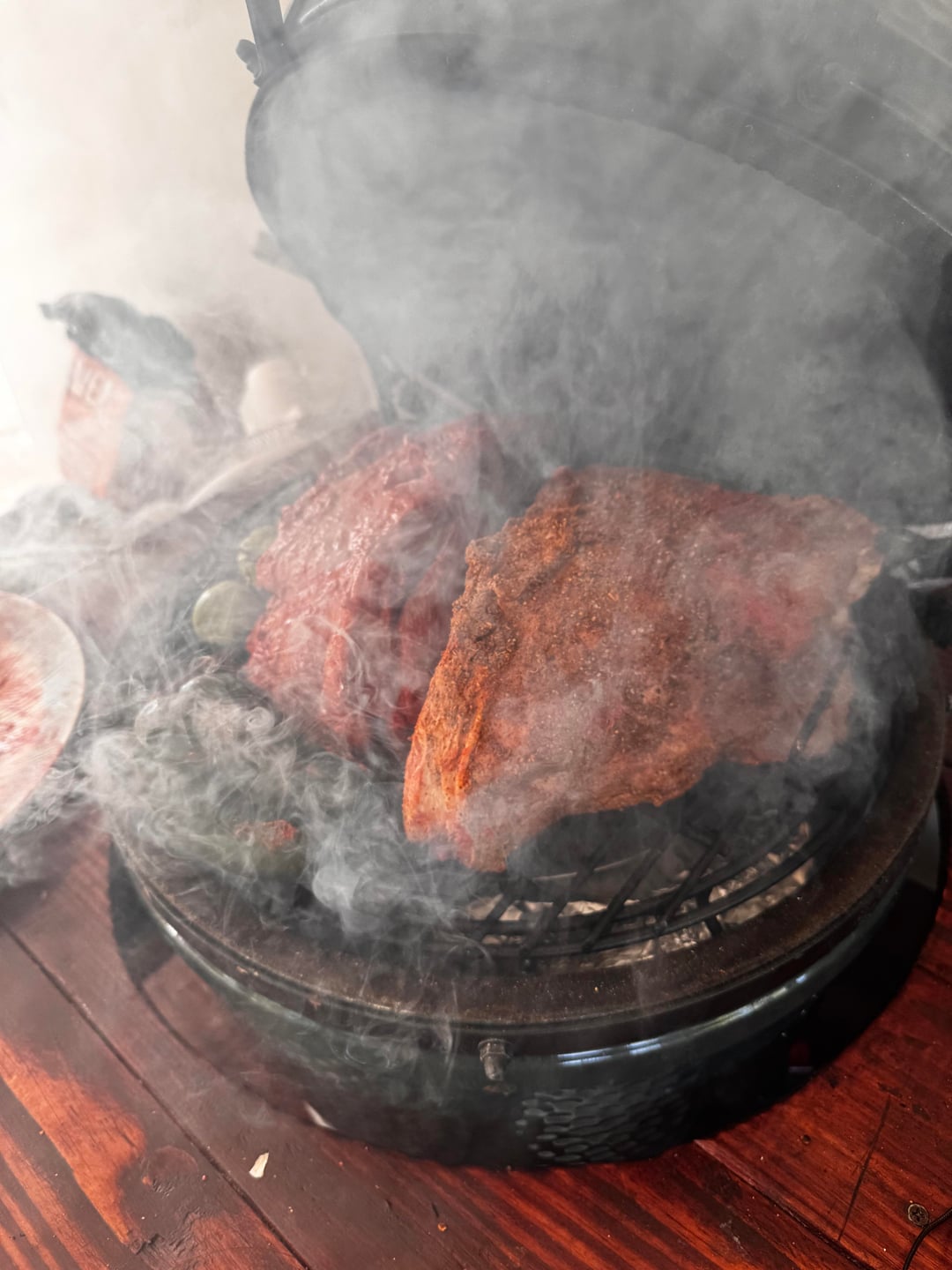 I decided to do something different and just sent these two pieces of pork butt for a long, steady smoke. Hope it works out fine!