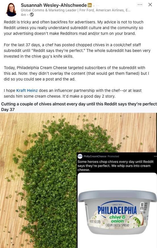 My theory is that u/F1exican has been a Philadelphia employee from the start and this was all a marketing tactic. And all the chives he’s cut have gone into the cream cheese