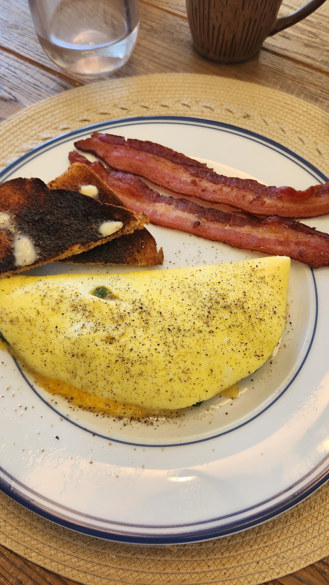 Spinach and cheese omelet, bacon and well done toastby GuavaOdd1975 9 Comments Few_Language6298 17 hours ago That looks like the kind of breakfast that makes you believe the day might actually be okay. Inevitable_Boss_9959 17 hours ago Don’t burn the toast😭 Fuzzy_Welcome8348 16 hours ago Looks great! jacquestrap66 15 hours ago Well done? Buttered carbon slices. Either-Ad6540 14 hours ago Yum Dry-Marketing-6798 12 hours ago The charcoal toast is good for an upset stomach. True story 😊 BRO-D-Q 11 hours ago That omelet looks immaculate! kevinsghost22 11 hours ago Yes!!! F****** yes burnt toast!!!!! MagazineDelicious151 10 hours ago Looks amazing