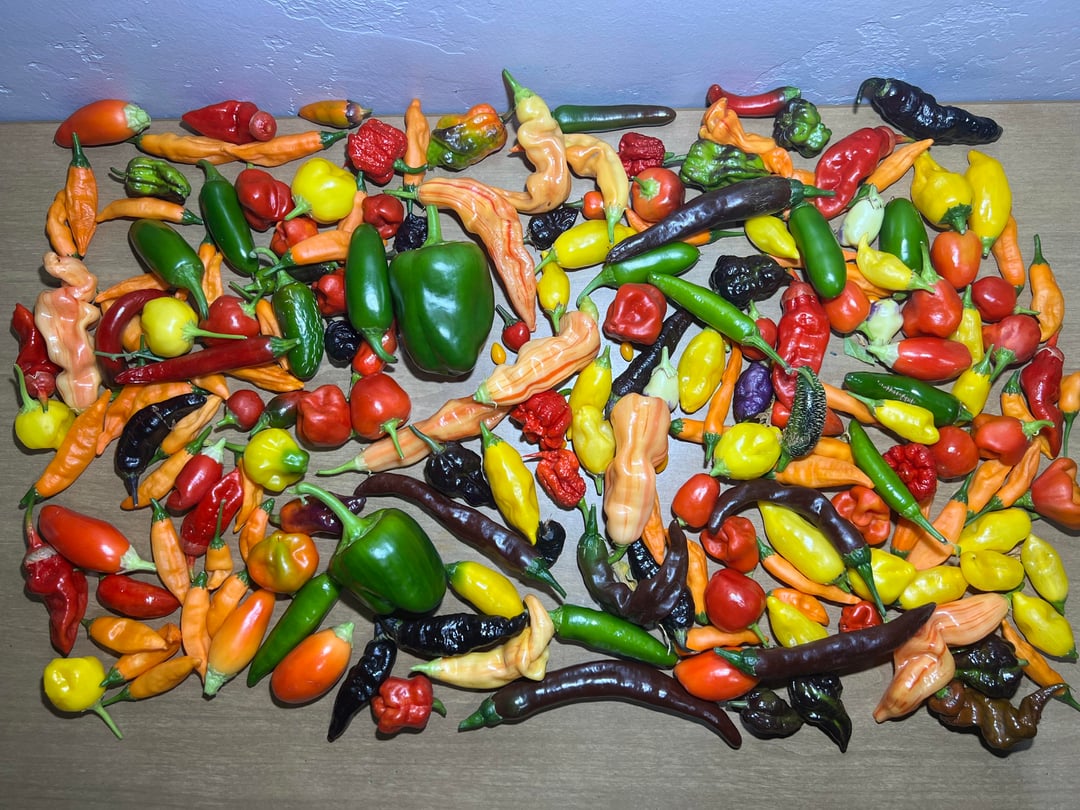 There are lots of super hots in the pics including blood ghosts, reapers, a couple 7-pots and many other less-common super hots and plenty of medium heats.
