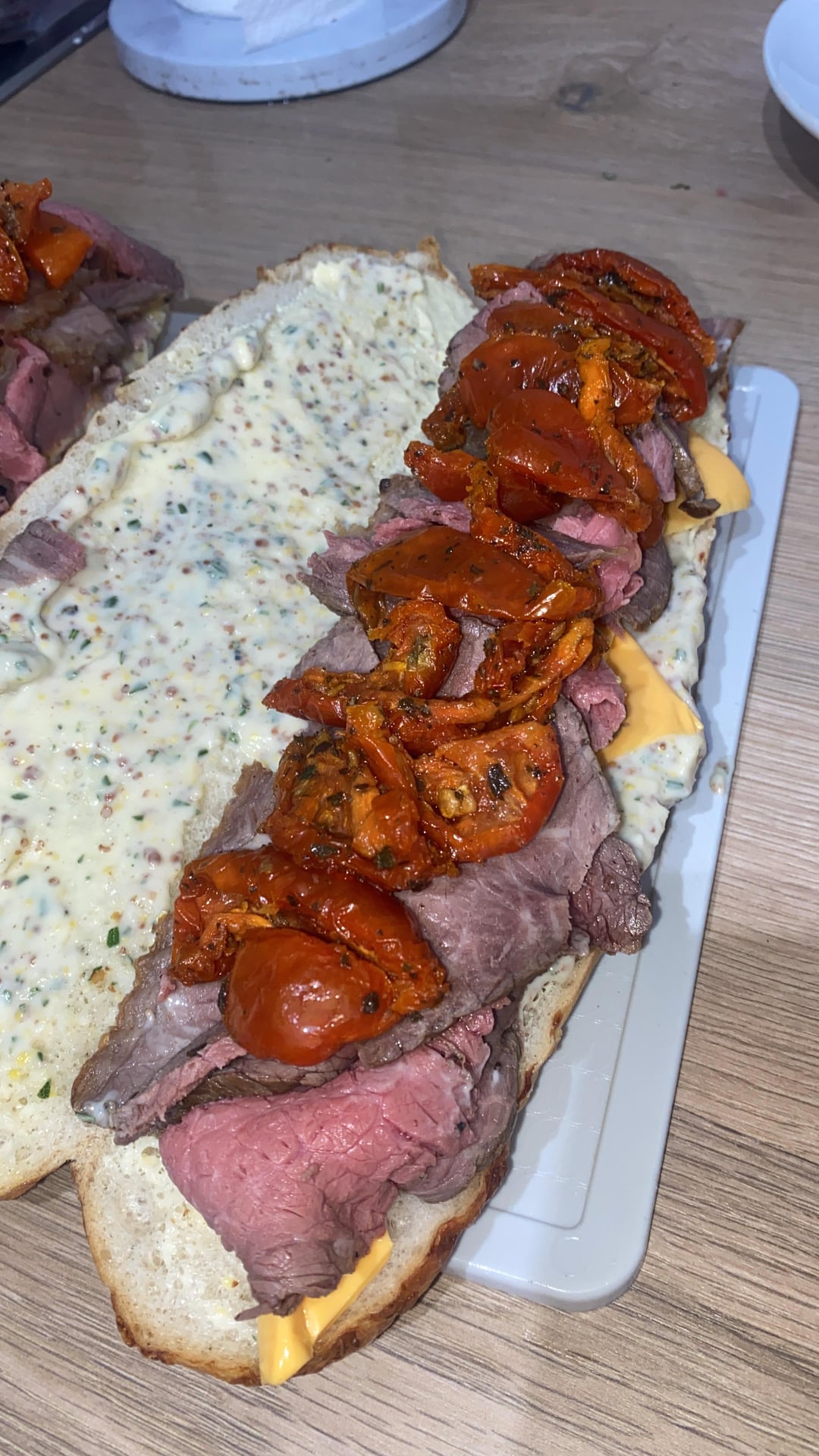 [Homemade] Roast Beef & Tomato Subby rossii68 12 Comments GodBlessIraq 8 hours ago That look so delicious, did you buy it? Jax72 8 hours ago That looks great I would love to know the details on that sauce. wwcaimd 8 hours ago Very nice popilikia 8 hours ago Looks like sundried tomatoes, but what’s the sauce? Peppercorn aioli? EveryValuable1503 8 hours ago That monster is soooo packed with everything I like, never mind about the olde ugly bald dude sneaking up from behind Wiggie49 7 hours ago did you get that roll from Walmart? Due_Phase_6431 7 hours ago Chicken sandwich asdf-7644 6 hours ago What cut was your roast beef? Looks good! MustardKarl 6 hours ago Incredible Due-Membership-9239 4 hours ago Really bro? Sun-dried tomatoes? What is it, 1998? HeyPurityItsMeAgain 4 hours ago What kind of bread is that? deeperest 4 hours ago I should call her.