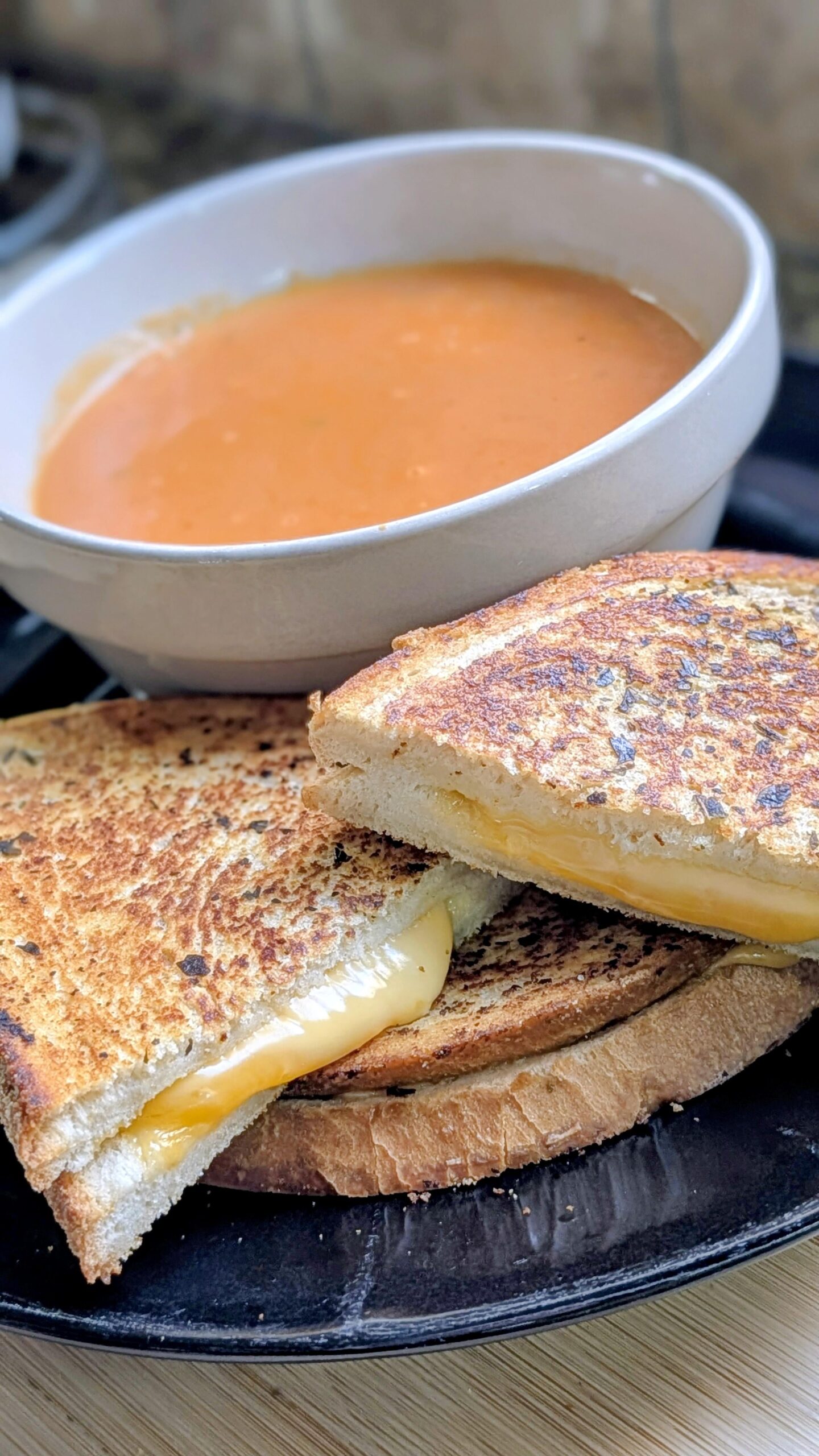 yours look so much better than mine! I burnt 1/2 the grilled cheeses 🙁 Soup was pretty good though. I also emptied it into a small saucepan. I hate the idea of plastic-infused food or I’d eat more frozen stuff!