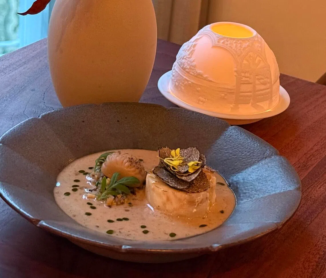 But things warm up with the temperature of the next few courses. Firm halibut swims happily with many variations of chestnut – a sweet nutty veloute with sauteed bits for texture and chestnut-shaped paste on the side. Black truffles on top seal the deal.