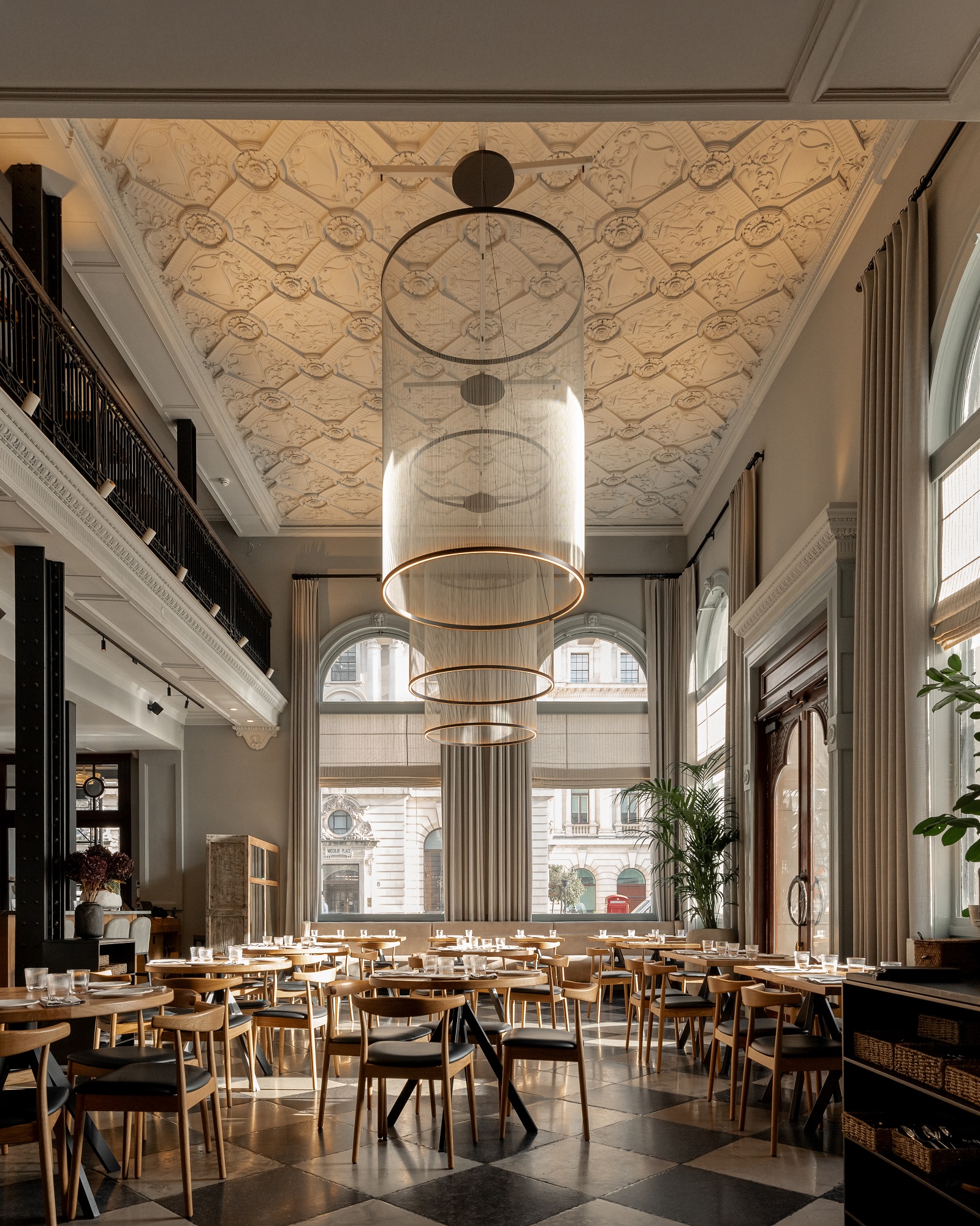 Stepping in from the rush of Waterloo Place, the change in atmosphere is instant. The space feels effortlessly serene — high ceilings, amber lighting, and soft textures creating an openness that’s both grand and welcoming. There’s no self-conscious design statement here; instead, a gentle sophistication that lets the food and conversation take the spotlight. The open kitchen catches your eye subtly with movement, precision, and ease — a kind of quiet theatre that you watch without realising.