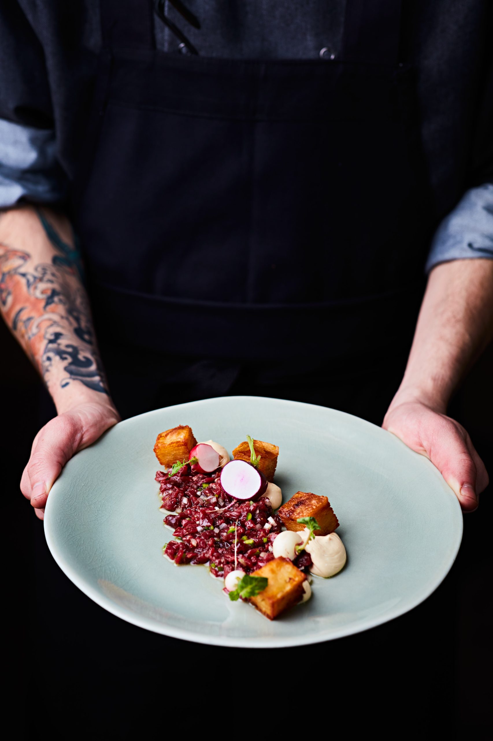 We began with the yellowtail crudo — thin slices dressed with freekeh tabbouleh, pistachio, yoghurt, and tomato salsa. Light, fresh, and finely tuned, it set the tone for the clarity of flavour to come. The roasted beetroot, paired with smoked labneh, Wigmore cheese from Riseley, and shards of crispy kale, was just as poised. The sweet, earthy beetroot played against the labneh’s subtle smoke, each element harmoniously distinct.