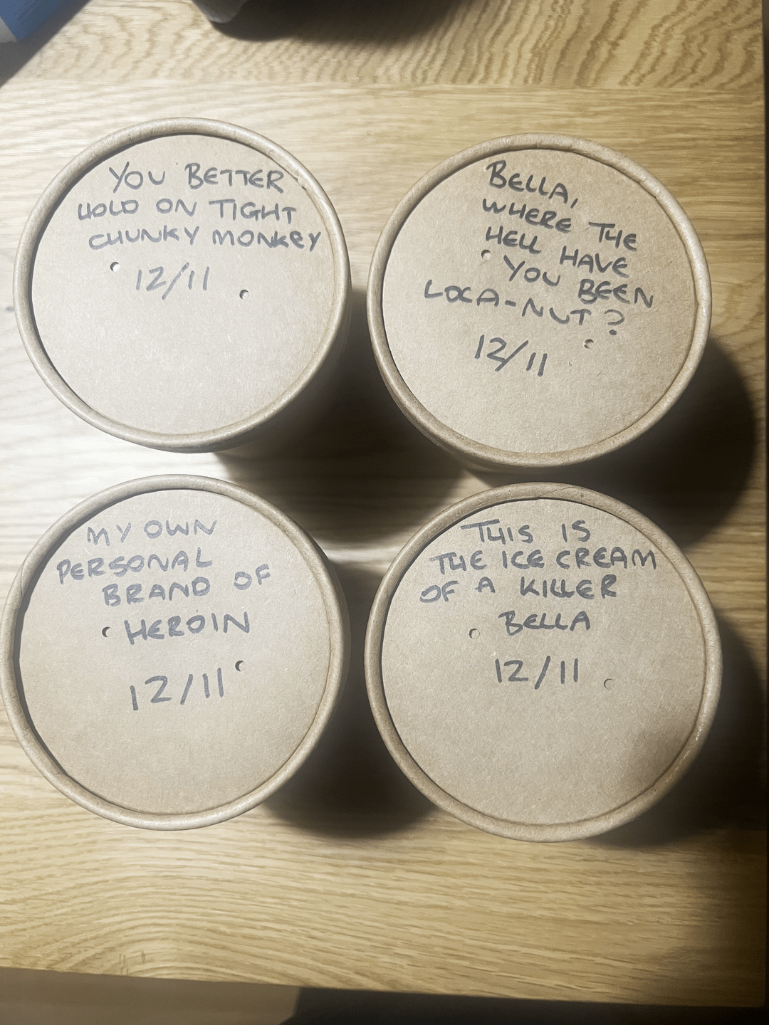 'This is the Ice Cream of a killer, Bella' – Vanilla Ice cream with edible glitter sparkles