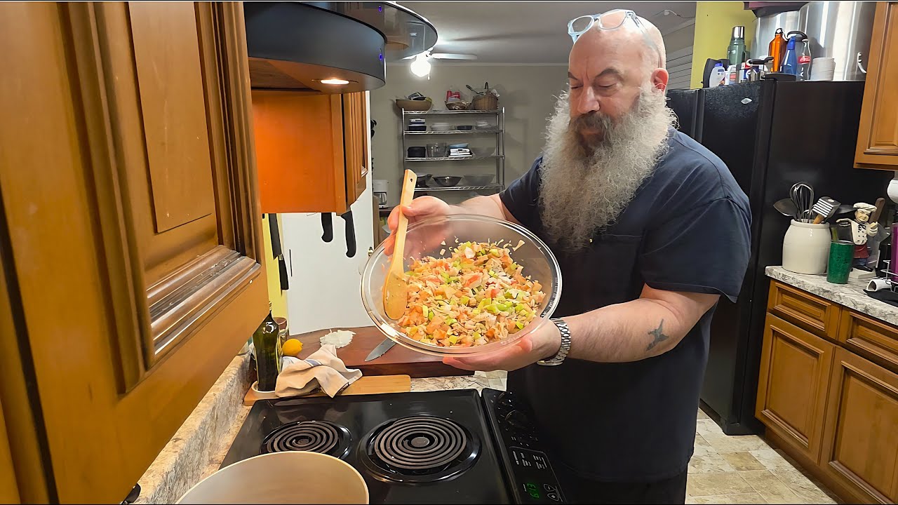 All right. So, today what I’m going to make is a seafood salad. So, I got two lbs of shrimp boiling. And then I have a packet of that uh it’s fake crab meat, but it’s Alaskan pollic. And I like it a lot. And then I have a container of um claw meat, crab claw meat. And I I forgot I I wanted to get a container of lump lump crab meat, but I forgot. So, it’ll still be good this way. And and there’s lots of variations that I do with this, but this one is kind of my standard. Generally, when I make a seafood salad, this is kind of it. Sometimes I’ll add something, sometimes subtract something, but generally speaking, this is my standard salad. So, while these shrimp are bo well are going to boil. And by the way, when you’re boiling shrimp, watch them close cuz it’ll foam and make an absolute mess everywhere. Uh, I’m boiling them in the water that I thought them in. And then I’m going to save that water. And after I peel the shrimp, I’m going to throw all the shells. I’m going to dump about half of the water out, throw the shells back in, and that way I can make a stock and freeze it. And you could use it for all different kinds of stuff. So, while that’s while the shrimp are cooking, as soon as it comes to the boil, I’m going to shut it off and just let it sit for a little bit. I’m going to peel uh cut up some celery and a piece of onion. And generally, I don’t use a lot of onion in seafood salad, but I’m also going to use this for another recipe, which I’m going to film, but it’s going to be in a different video. It’s going to be stuffed mushrooms. All right. So, I chopped up some celery. Got it in the bowl here. All right. So, I peeled the shrimp. They they boiled. And now I’m going to make stock. And there is what that looks like. So, I’m just going to boil that down while I’m doing the rest of this. And I don’t know if that’s going to make too much noise, but anyway, uh, let me chop up this onion. The bulk of this onion is going to go for the stuffed mushrooms. I don’t like a whole lot of onion in seafood salad because I think it’s overwhelming. All right, so here’s that couple pounds of shrimp. And I’m going to cut that up. Not real small. About, you know, 1/2 inch 1/2 in size pieces or so. All right. So, there’s the shrimp, shrimp, onion, and celery so far. Here’s that uh package of just basically fake crab meat. It’s Alaskan pollic. I mentioned it earlier and uh I like it a lot. It’s already cooked, but I like it. I like using this on a um like a salad. Just put it on top, you know, a green leaf salad. It’s good. All right. So, that was 2 lbs of shrimp. Believe it or not, it turns into nothing. And then this is a pound of that pollock. All right. Here is a 8 oz, I think. Yeah, half a pound of uh claw crab claw meat. And like I said earlier, I I wanted to get a a thing of lump. Uh but I forgot. But this will still be good. This is Oh man. That’s seriously good. All right. Little bit of salt. Not too much cuz this a lot of this stuff is already fairly salty. And then black pepper. And I don’t have any fresh parsley, so dry will have to do and it’ll be good. And then some Old Bay seasoning, which is that Use it up. I got a spare one right there. All right. Gently mix it. And here is what it looks like. before the mayonnaise. Uh you could use um sour cream as well, but in seafood salad, I don’t like sour cream. I only like mayonnaise. And if it gets too pasty, I’ll pull a little bit of the water out of that um shrimp stock because every time I make shrimp, I make stock and I’ll strain it off, put it in a quart container, let it cool in the freezer cuz it’s good to have. Now, the mayo. And by the way, this is probably tomorrow’s lunch. Uh because this is always better the next day when it gets to sit in the refrigerator overnight. It’s just always always better. And there is that. It’s going to be good. Let’s give it a little taste. over the top. That’s good seafood salad. All right, so I got this little French bread here. You can get this from Walmart. And believe it or not, it’s not too bad. I mean, it ain’t the greatest in the world, but it’s it’s pretty good. I think it’s only like a buck and a half or something. And there you go. Nice little sandwich. That is outstanding, man. That’s like one of my favorite things. Seafood salad. You can make other versions of this. You can if it’s expensive, but if you can catch lobster tails on sale, chop them up. Shrimp, that fake crab meat, that pollic I like a lot. Claw meat, the lump crab meat, uh just all sorts of things and just run wild with it. But generally speaking, the basic version I just made here, it’s good.