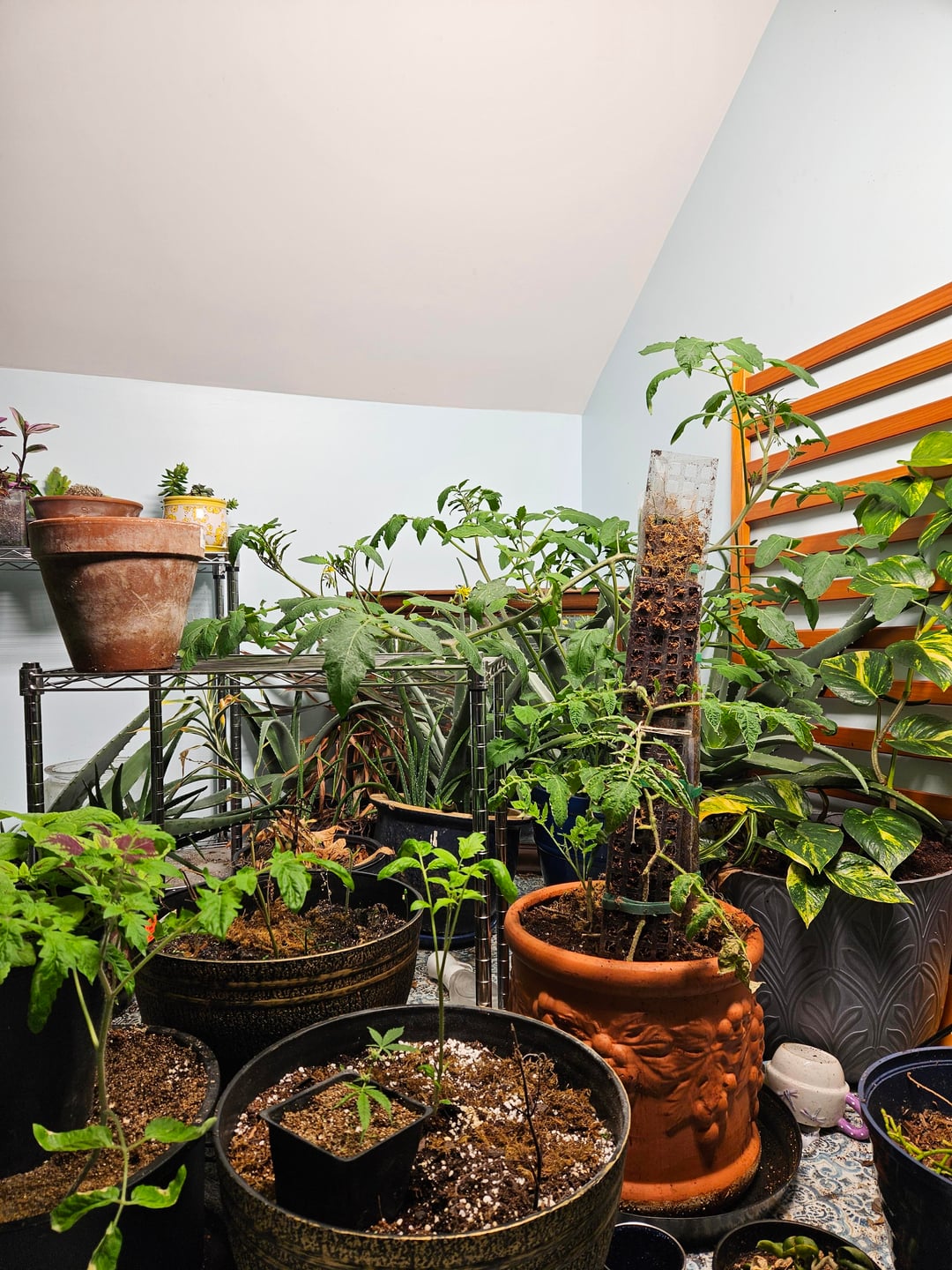 As a winter project I decided to propagate a tomatoe plant from my summer garden and grow it inside on a moss pole. It seems happy. Has anyone else tried this?by Puzzleheaded_Cap_754 Dining and Cooking