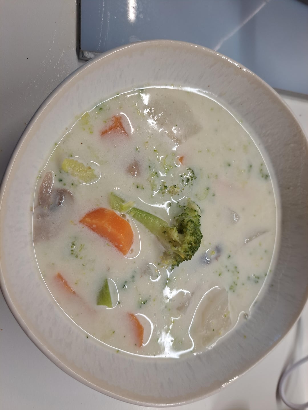 Pasta with shrimp 350 kcal (50 grams uncooked pasta + 100 grams frozen shrimp + a little bit broccoli, oil, lemon juice and cream) Salad 57 kcalCreamy broccoli soup 217 kcal by Fine-Ad-2081 Dining and Cooking