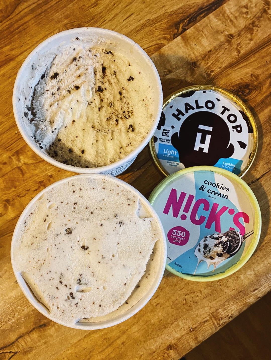 In conclusion I’d say that texture wise, Nick’s wins as per usual, but flavor wise the Halo top is giving more cookies and cream to me, so it slightly edges over.