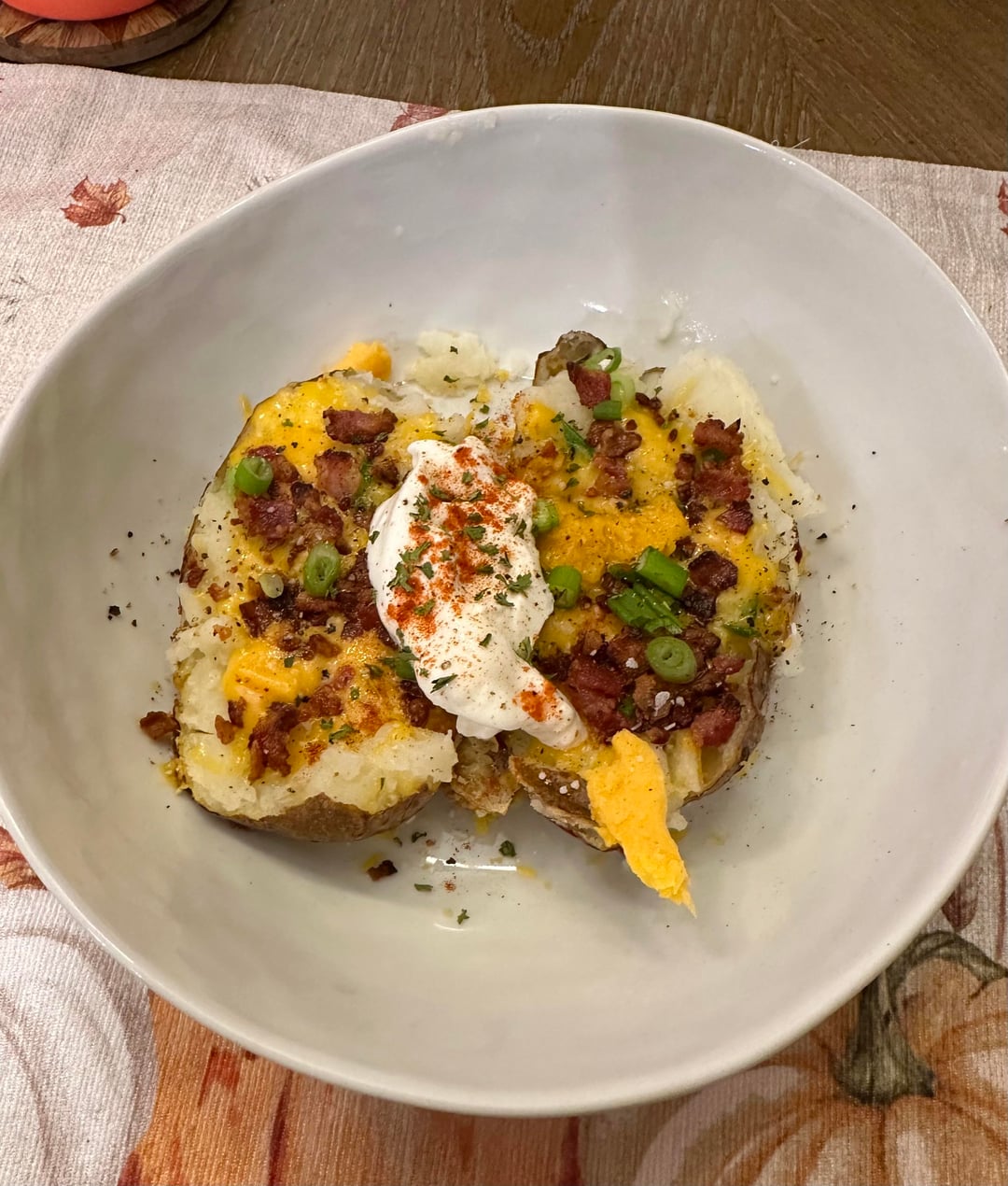 Seventh photo is a loaded baked potato, aka “girl dinner”.