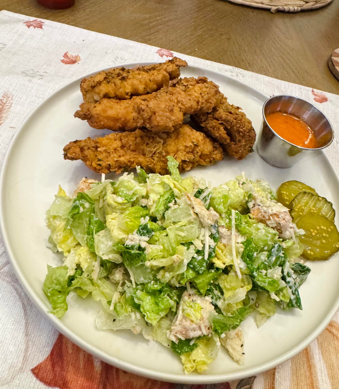 First two photos are a fabulous meal, Crispy Fried Chicken Tenders with Caesar Salad and buffalo sauce. I did a take on Alison Roman’s Spicy fried chicken and it was incredible.