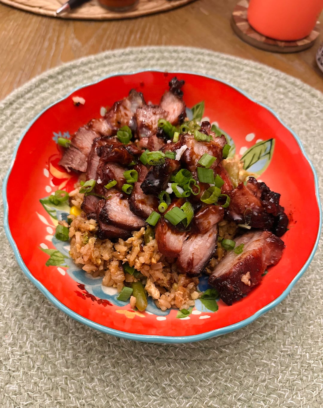 Third photo is Char Siu Pork with vegetable fried rice. I used Cassie Yeung’s recipe for Char Siu and it was great, but pork belly reigns supreme over shoulder imo. The fried rice was pretty good but when I make it on the blackstone it’s better. The next day, i ate this with sesame noodles.