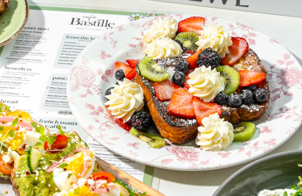 Café Bastille’s menu stretches far beyond croissants and coffee. Expect a lineup that includes truffle croque madame, steak and eggs, and the café’s best-selling stuffed Nutella French toast. Sweet dishes range from pistachio pancakes to dulce de leche French toast and crispy brioche topped with berries and butter whipped cream.