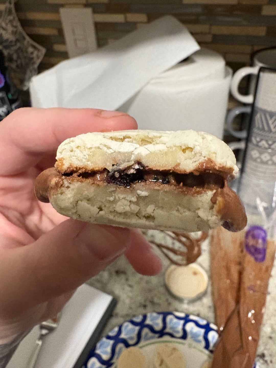 Looks good for a first try. Yeah they look kinda gooey on the inside, could use longer in the oven. The interior should be a bit spongy.