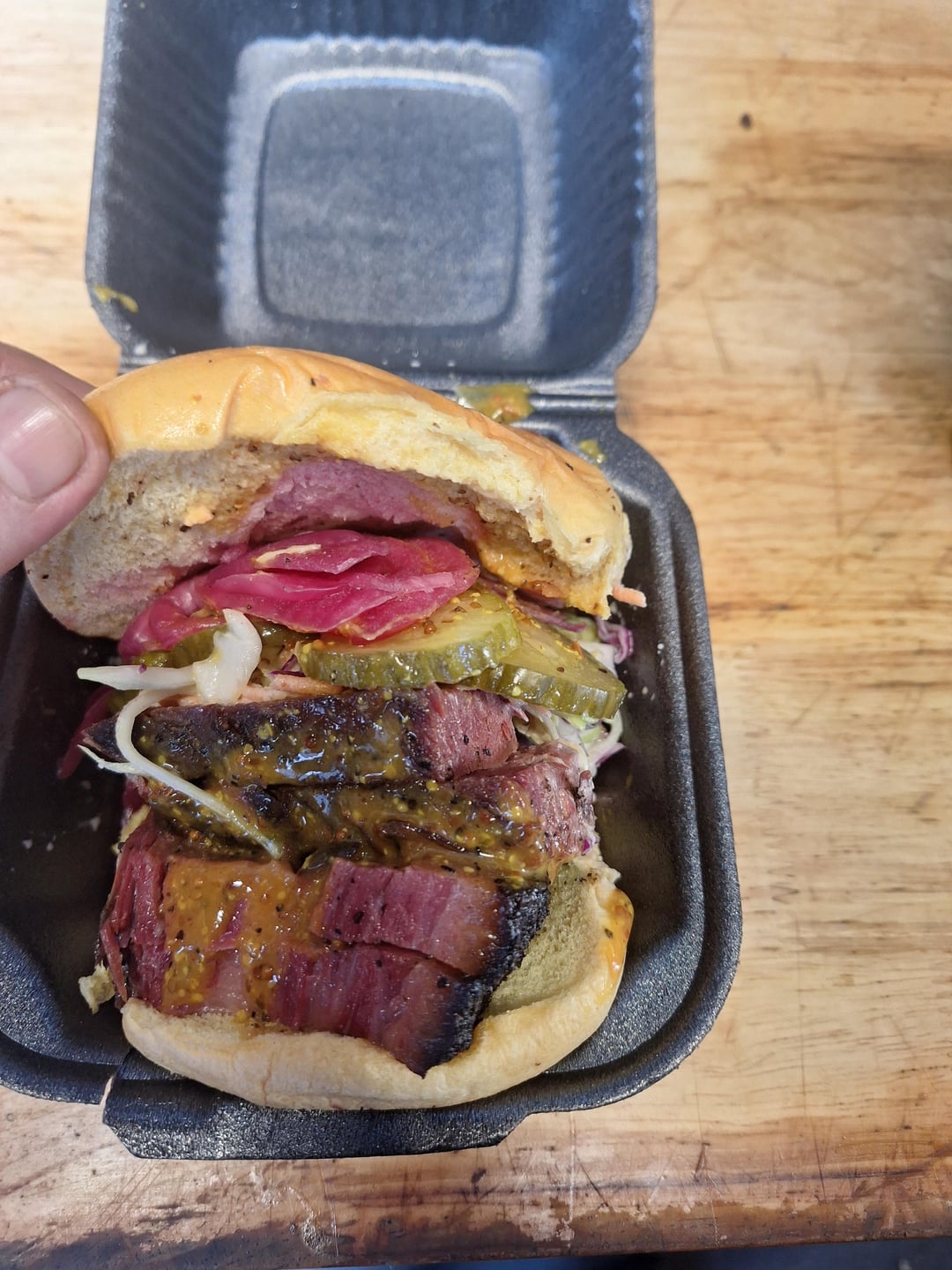 Pastrami, pickles, onions, coleslaw and some gold mustard sauce. Lasted a whole 3 minutes. by SgtSlaughterEX 10 Comments skewh1989 9 hours ago You’ll probably get some “too much meat” people in this comment section, but I would fucking devour that thing. SomeRecognition2157 9 hours ago I’m here to ask for the picture of the big version of this lol Original_Chapter3028 9 hours ago That looks divine breezygiesy 8 hours ago Making me want to turn my back on vegetarianism over here Feles_Amans 8 hours ago Vro share 😭 dudly825 7 hours ago A wee ‘li pastrami johnhotdog 7 hours ago i love the little bun lift to show us exactly 0.01% more of the sandwich lol m0nstera_deliciosa 7 hours ago Daaaaamn. Can you make another? I’m hungry. MagazineDelicious151 6 hours ago Looks good treesmith1 6 hours ago Dang skeeter, makes the junk wiggle a bit.