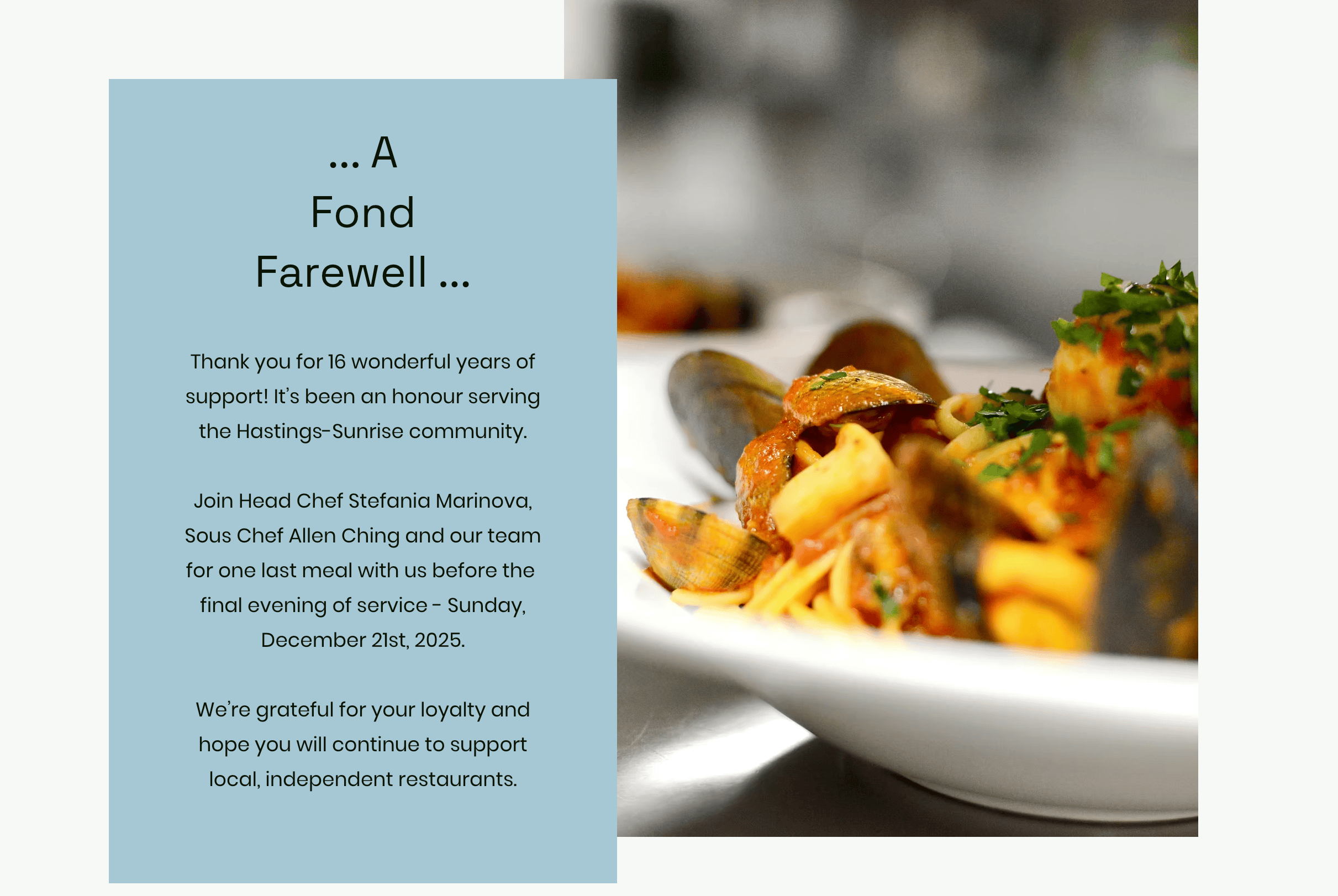 The team shared the news on Instagram and their website earlier this month, marking the end of an era for the Hastings Sunrise community.
