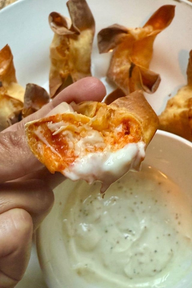 All you really have to do is make the buffalo chicken filling ( canned chicken, spices, cream, mozzarella, hot sauce), then put it on the wonton. Place in the air-fryer for 6-8 minutes. They are so good and addictive! Cab make this low carb with jicama wraps!