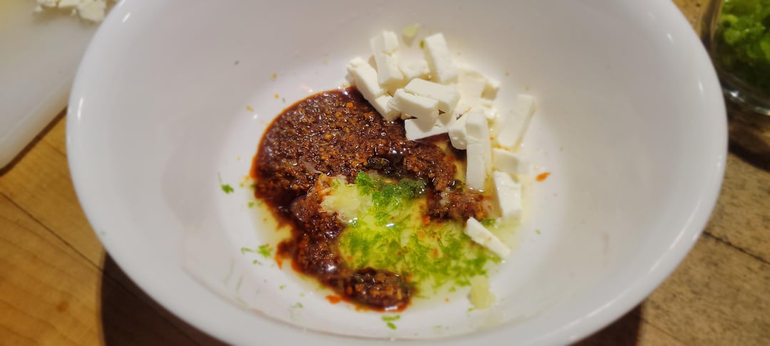 No tare needed, but I enjoyed a mix of lime zest, lime juice, homemade hot chili crisp, and grated garlic.