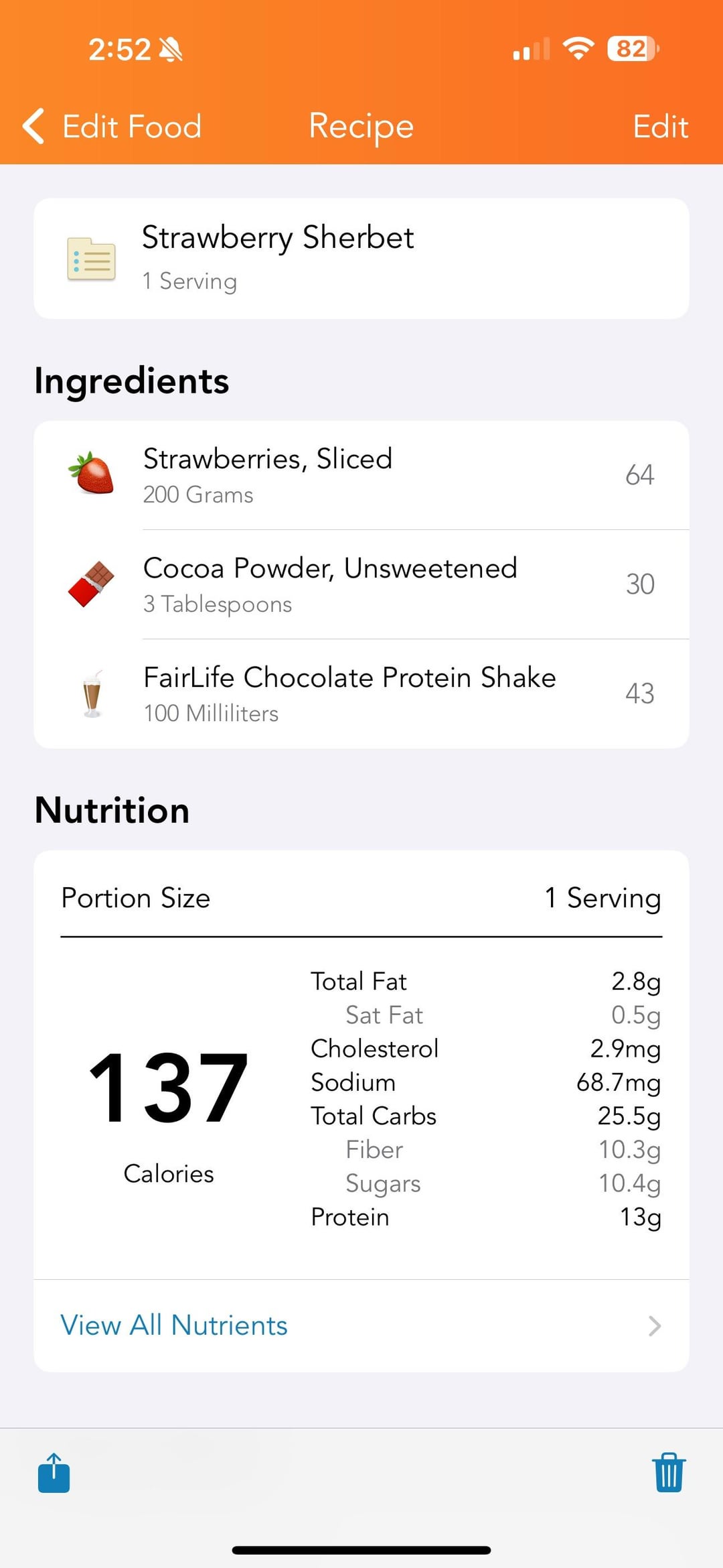 - Strawberry sherbet for dessert
