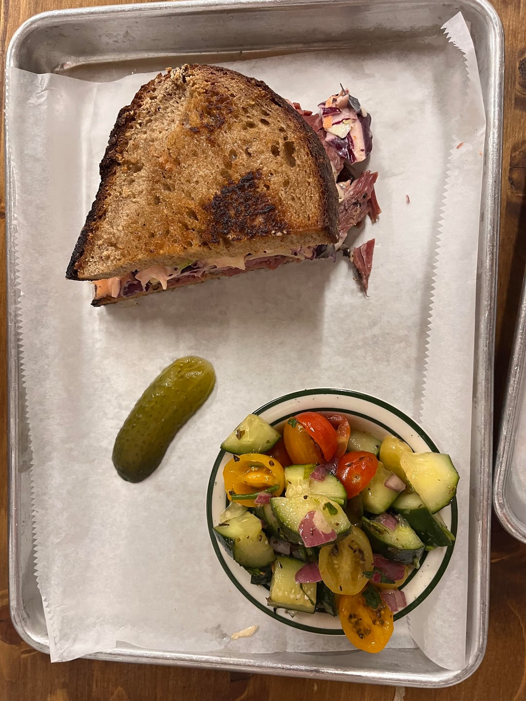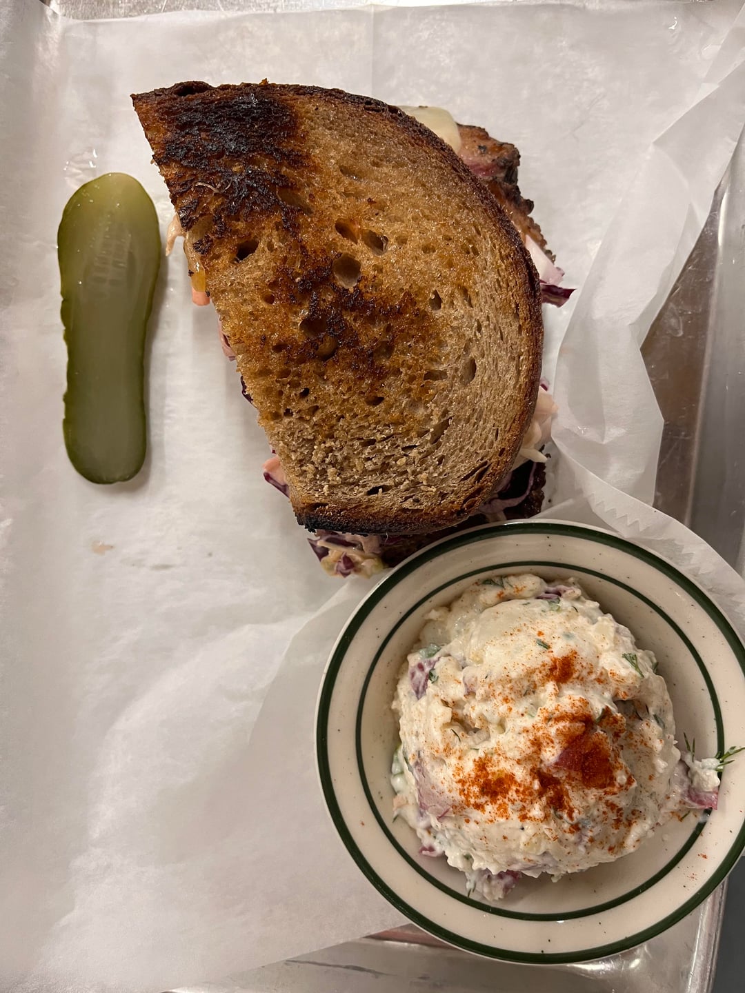 I had The Rachel, some latkes, potato salad, and cheesecake. All of it hit the spot.