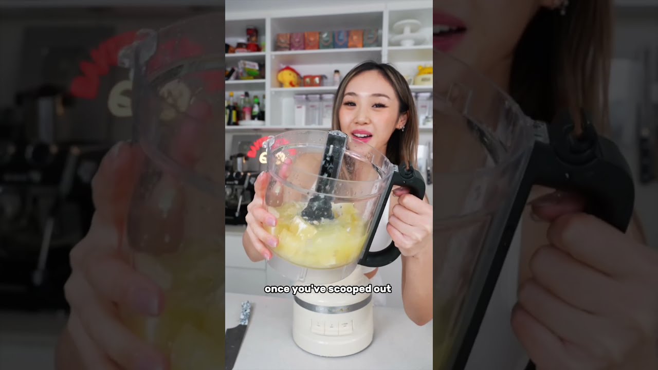 We’re making threeingredient lemon sorbet. M. So refreshing. Make these into lemon cups. Cut off the top. Scoop out the inside like this. Once you’ve scooped out all your lemon, lit them with some coconut milk and sugar or a sie. Pour it into two ice cube trays. And we’re going to freeze these till solid. These have completely frozen. So, let’s unmold them. Now we blitz.
